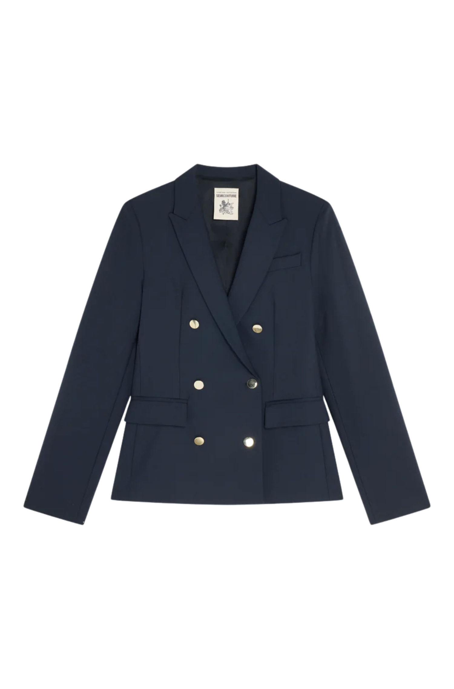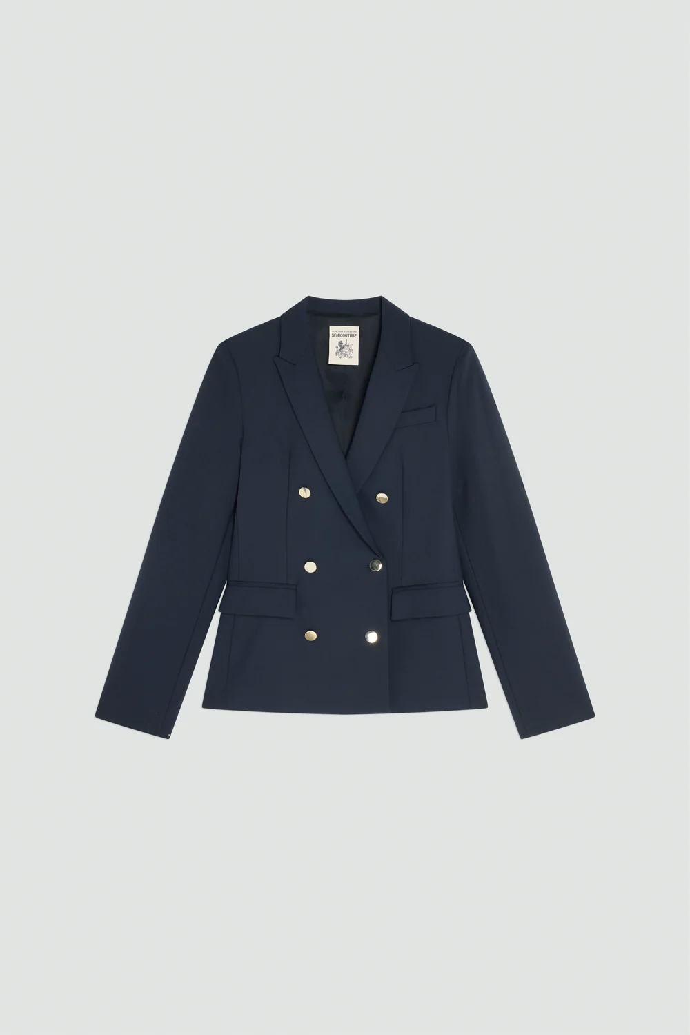 Crafted from a lightweight wool blend with added elastane, it combines comfort, structure, and breathability. Featuring a double-breasted front, classic lapels, and a regular hip-length cut, it enhances the silhouette with understated elegance. Perfect for both professional and everyday looks, this blazer can be paired with the Gracia trousers or Antonina waistcoat for a coordinated and polished ensemble. A staple piece that reflects Semicotures dedication to refined simplicity and quality craftsmanship.