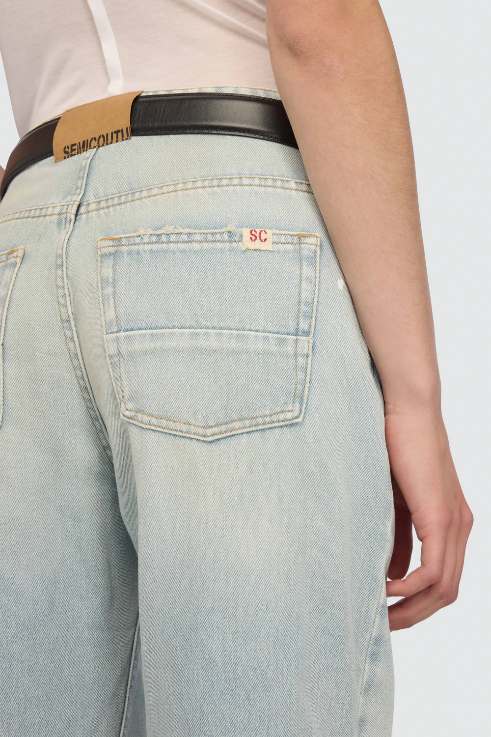 Crafted from 100% cotton denim, they offer an authentic structure and a firm hand that supports the wide leg without feeling overly stiff. Brushed detailing adds a creative twist to the wash, underlining the jeans urban and distinctive character.
