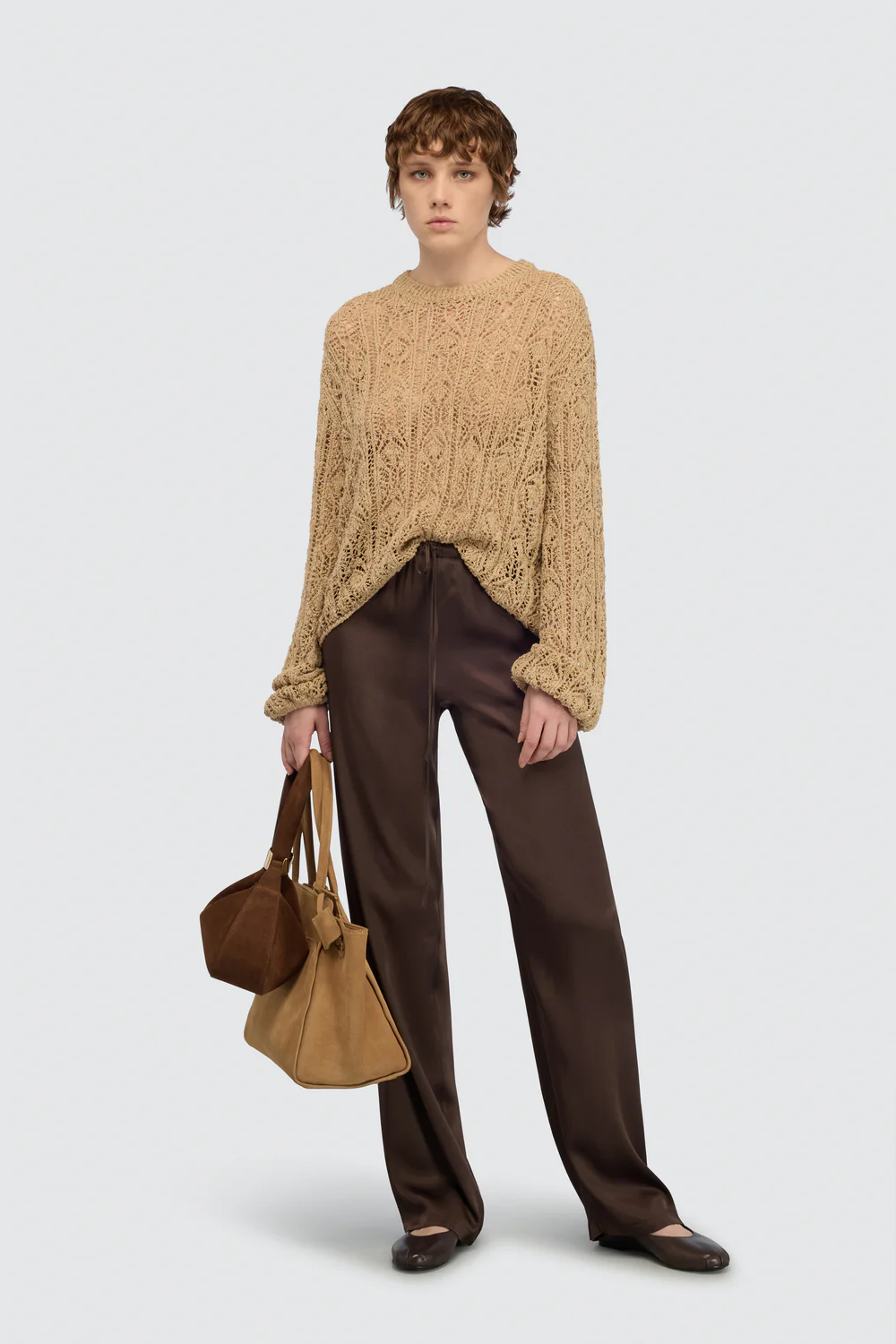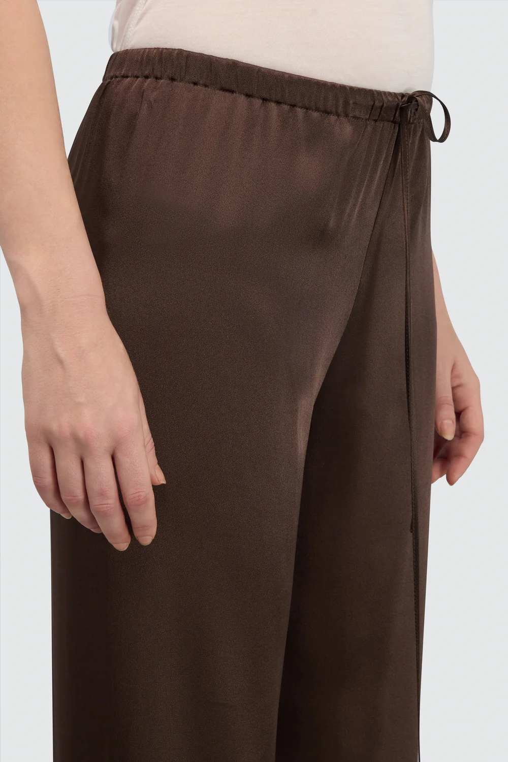 An elasticated waistband with drawstring allows for an adjustable, all-day comfortable fit while maintaining a neat, refined appearance. The 74% acetate and 26% silk composition gives the satin a soft, cool handfeel and a sophisticated sheen that enhances both neutral and richer colourways.