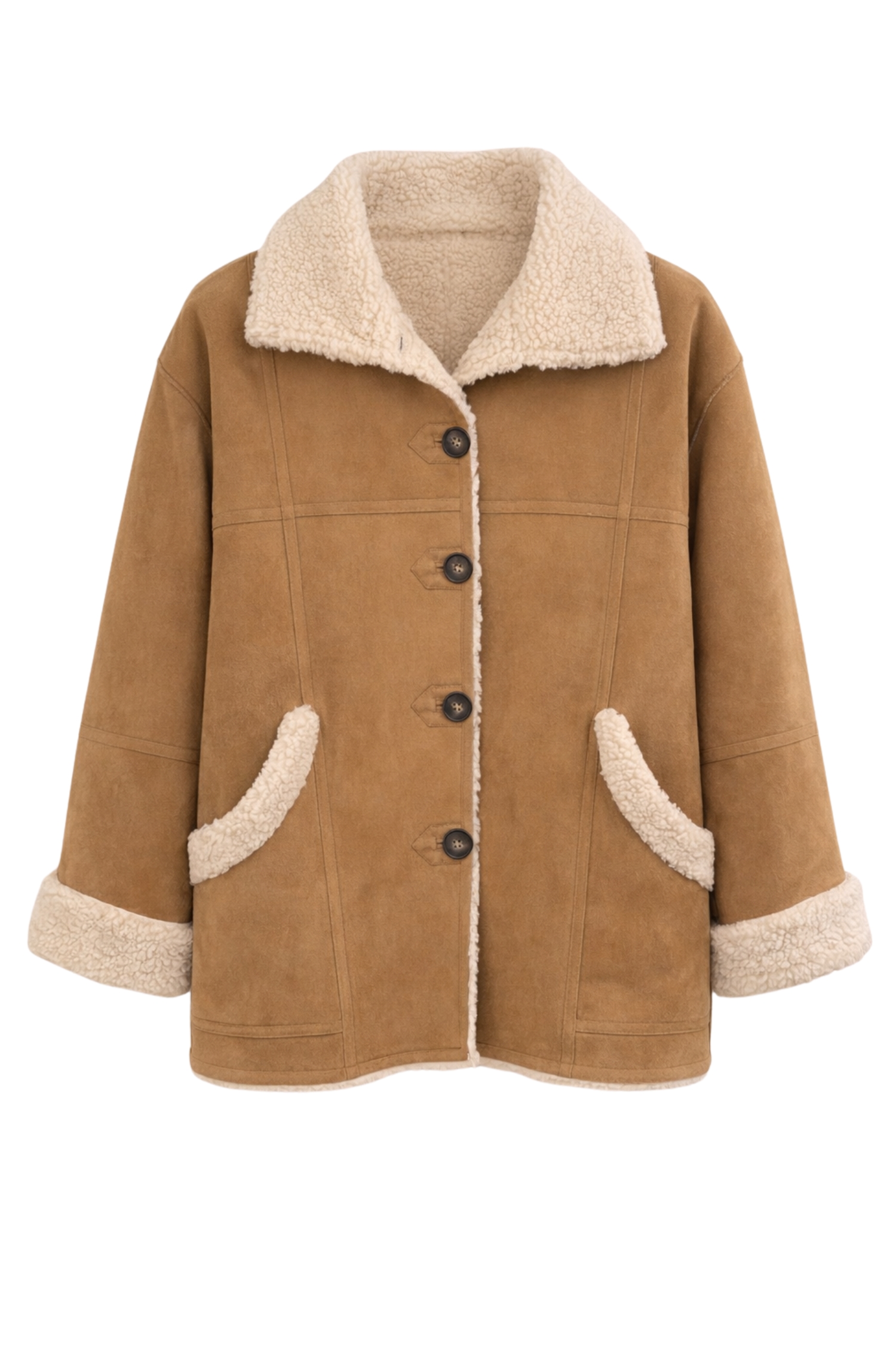 Crafted from faux shearling with a soft teddy-effect lining, it provides excellent warmth and comfort during colder days. The versatile camel color makes it easy to pair with both casual and elegant looks, from denim to tailored trousers or dresses.