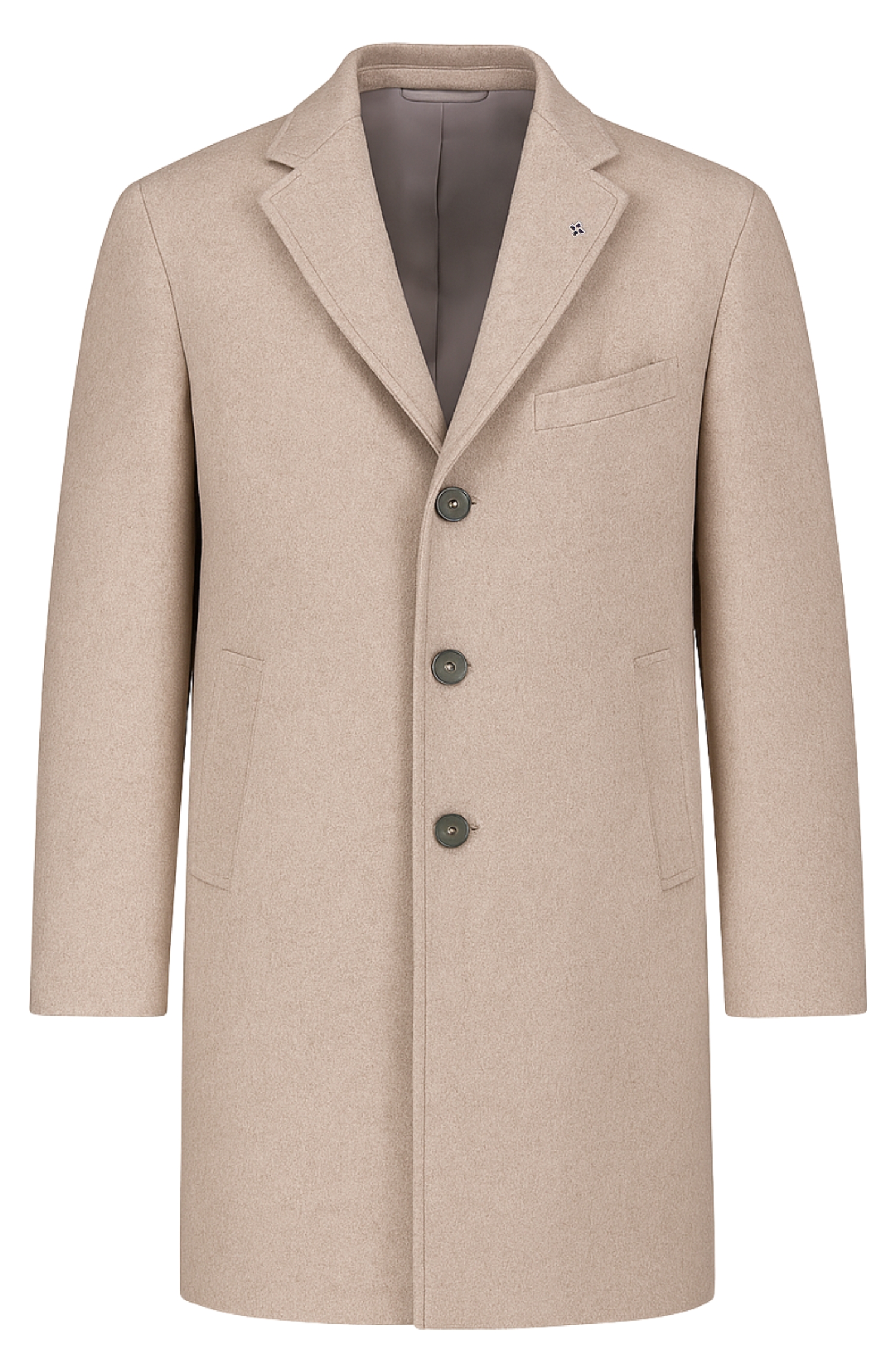 This single-breasted coat by Tagliatore, crafted from pure virgin wool in a refined taupe shade, showcases timeless elegance. Its clean structure, enriched by classic lapels and a chest pocket, delivers a minimalist yet sophisticated look. The three-button fastening and streamlined side pockets complete its versatile design, suitable for both formal outfits and elevated everyday wear. Warm, comfortable and impeccably tailored, this coat is made for those who appreciate refined style in every detail.