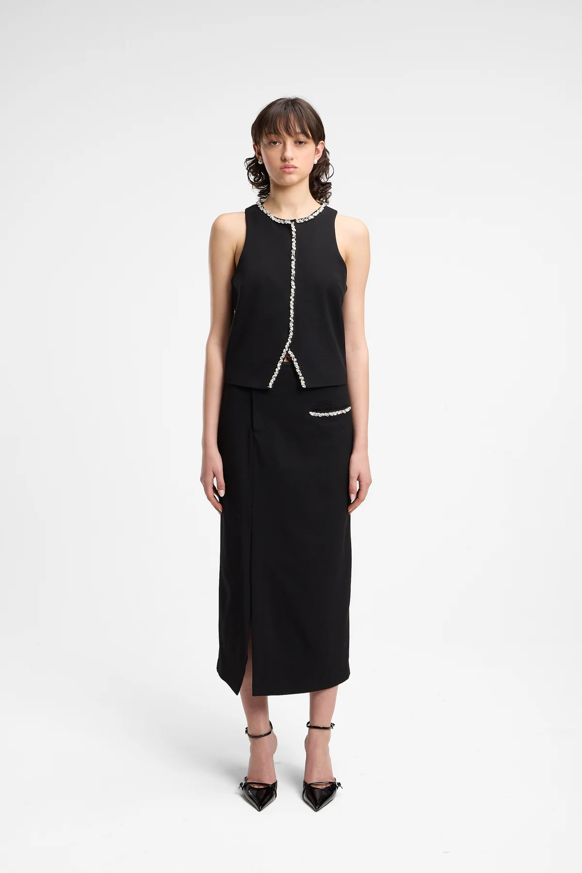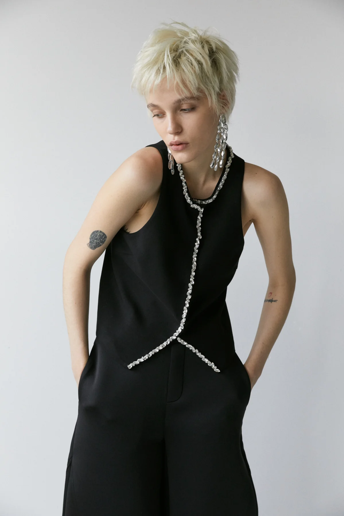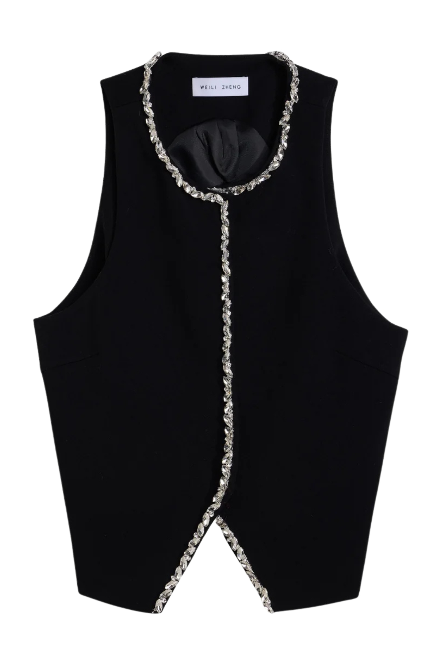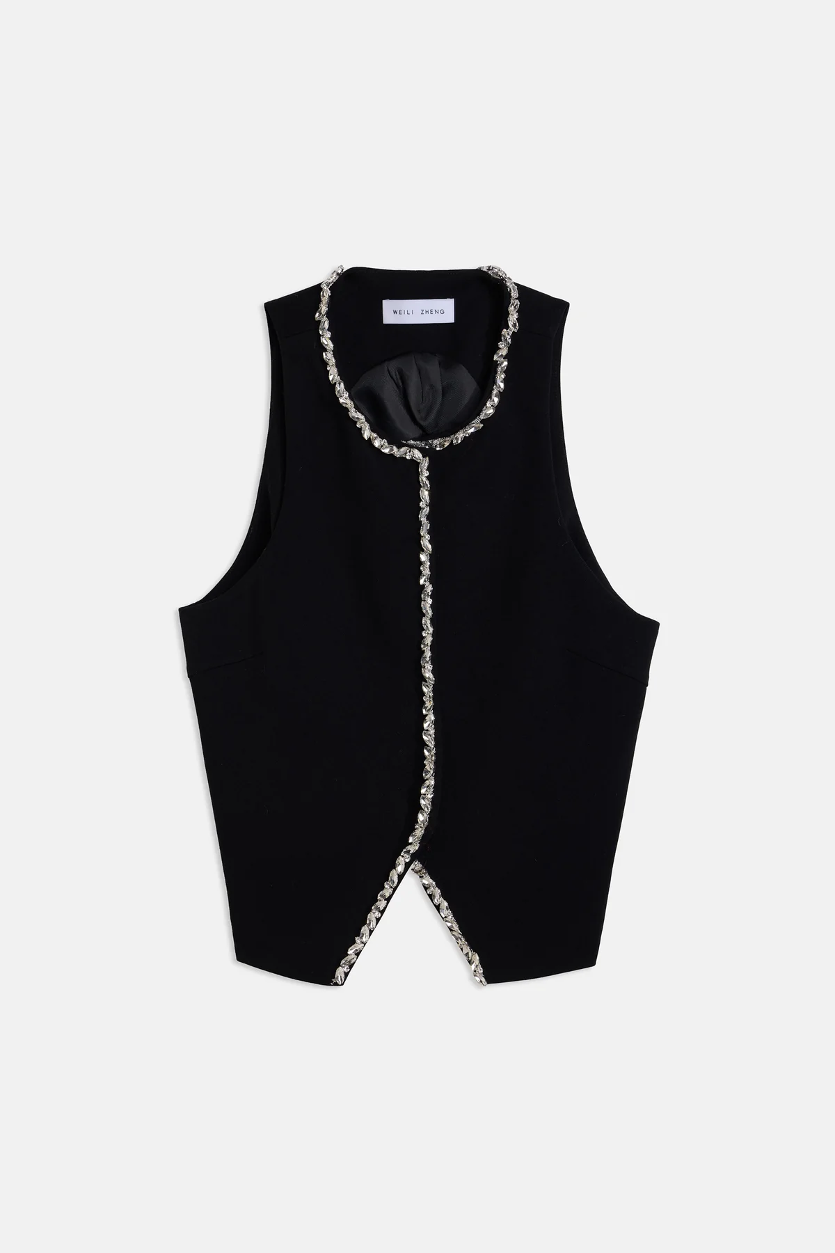 Gabardine Vest with Rhinestones and Crew Neck - Weili Zheng