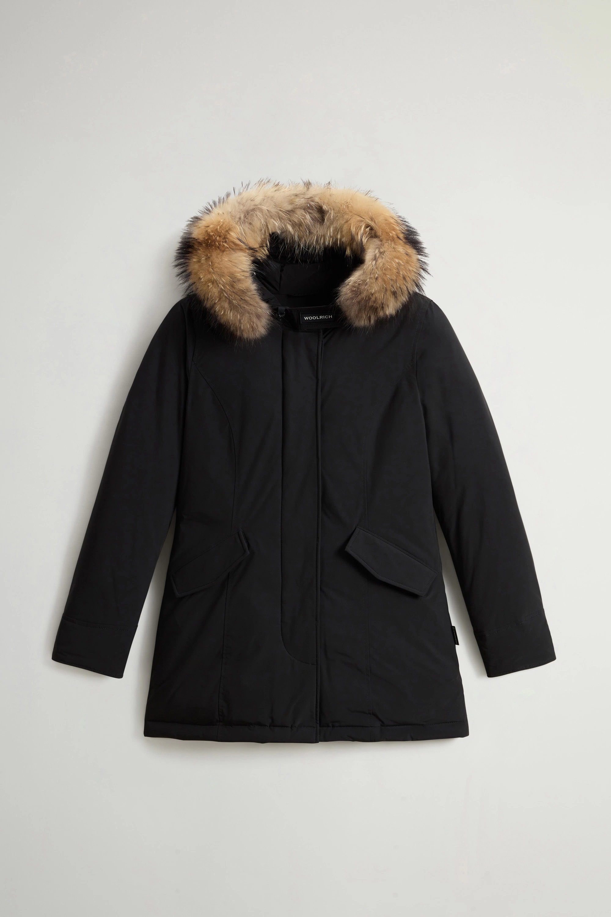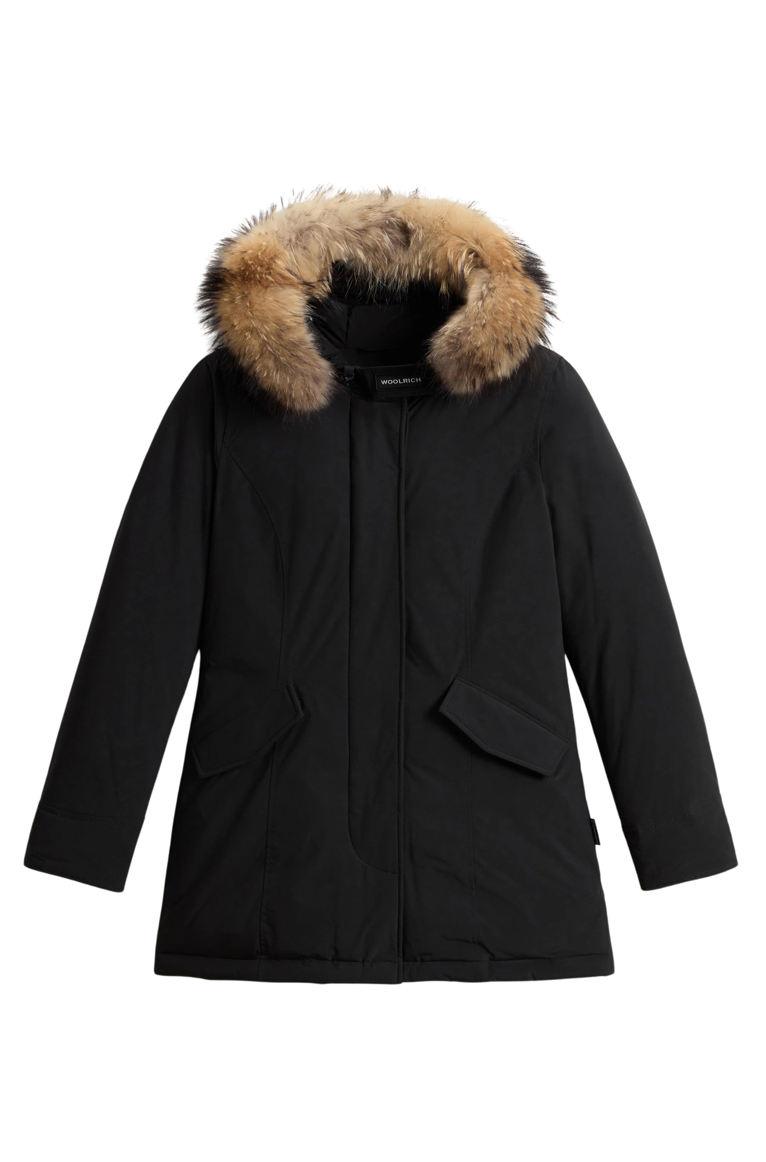 The Luxury Arctic Parka blends rich Woolrich tradition with a feminine twist, revisiting our historic design originally made to protect Alaskan pipeline workers from the harshest climates. This interpretation is made in our signature water-repellent, wind-resistant Urban Touch fabric and is filled with duck down and complemented by a large hood. The detachable raccoon fur insert enhances the design with a fine touch, while large pockets and ribbed cuffs provide additional protection on particularly cold and windy days.