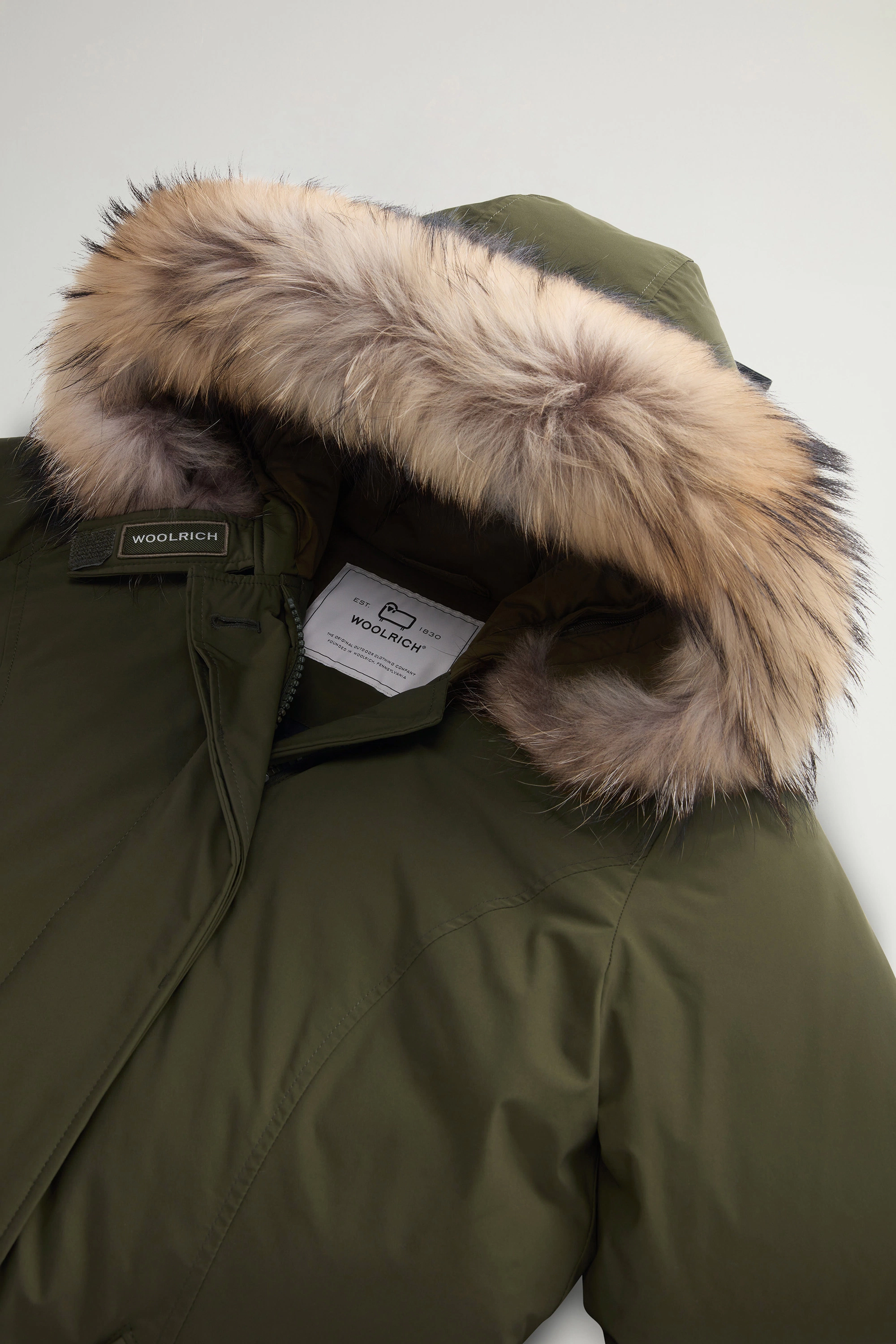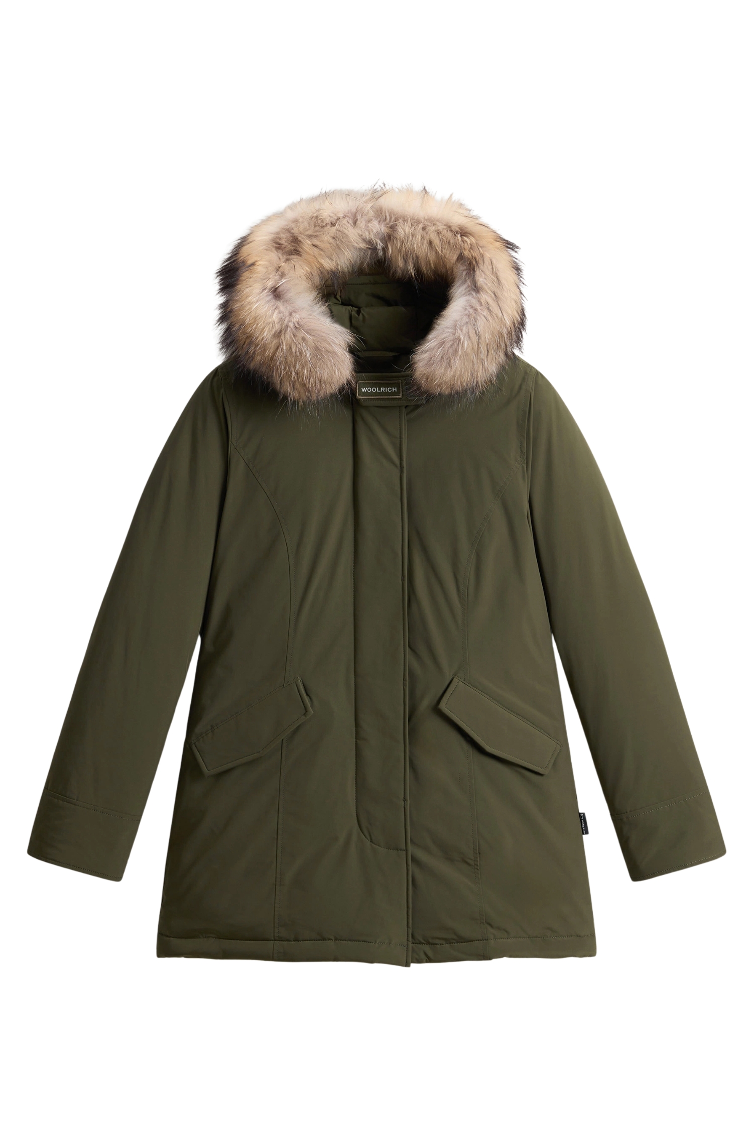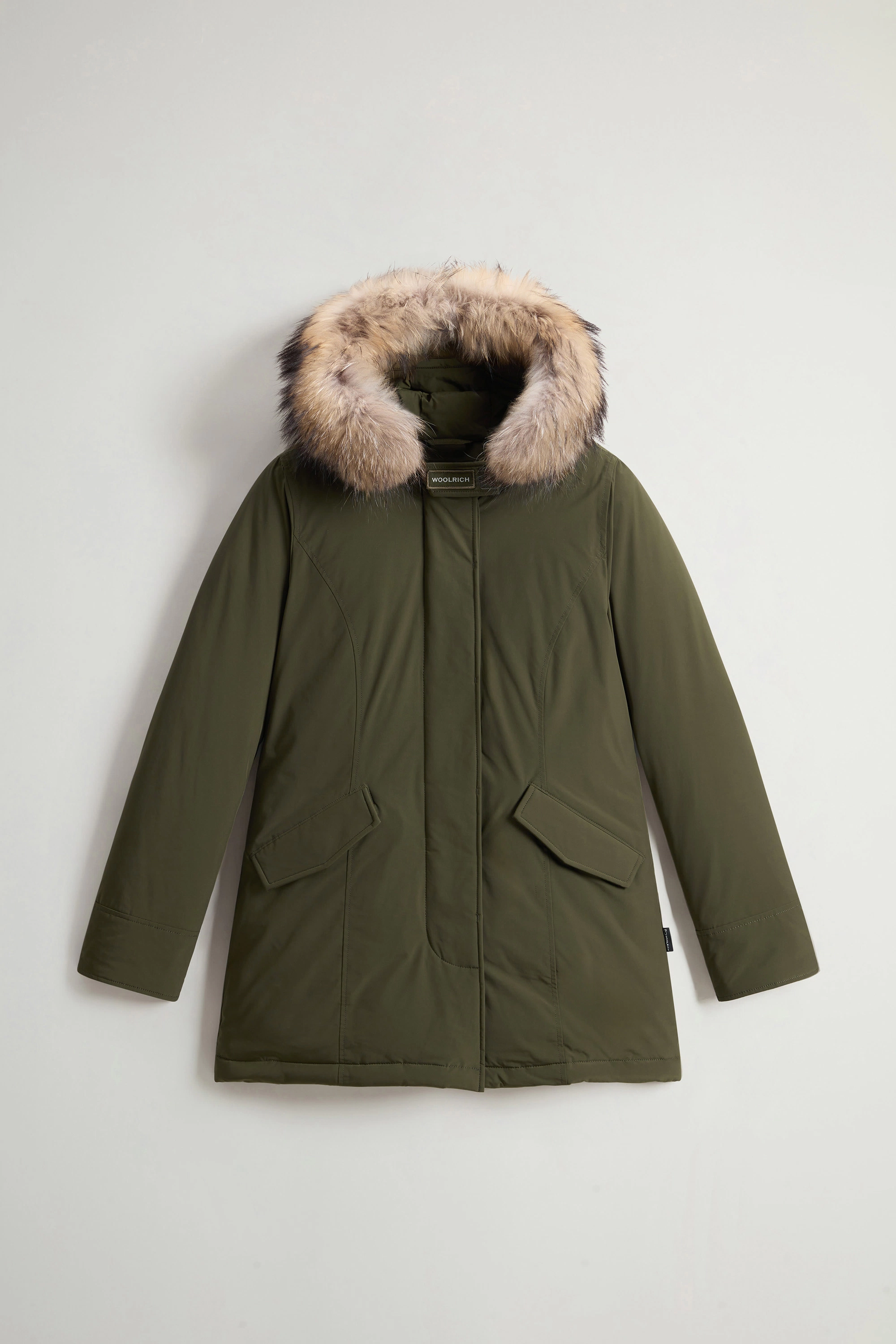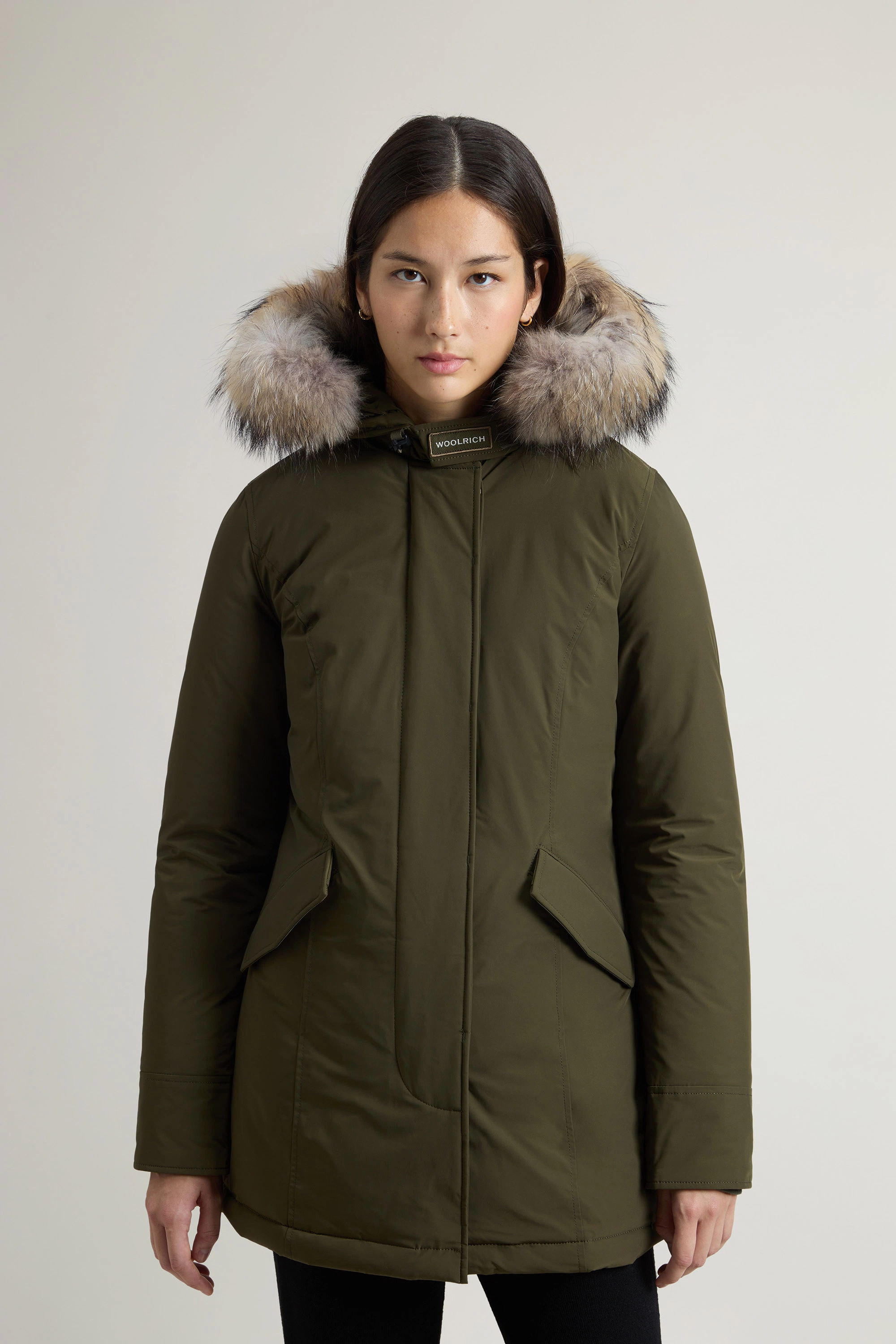 The Luxury Arctic Parka blends rich Woolrich tradition with a feminine twist, revisiting our historic design originally made to protect Alaskan pipeline workers from the harshest climates. This interpretation is made in our signature water-repellent, wind-resistant Urban Touch fabric and is filled with duck down and complemented by a large hood. The detachable raccoon fur insert enhances the design with a fine touch, while large pockets and ribbed cuffs provide additional protection on particularly cold and windy days.