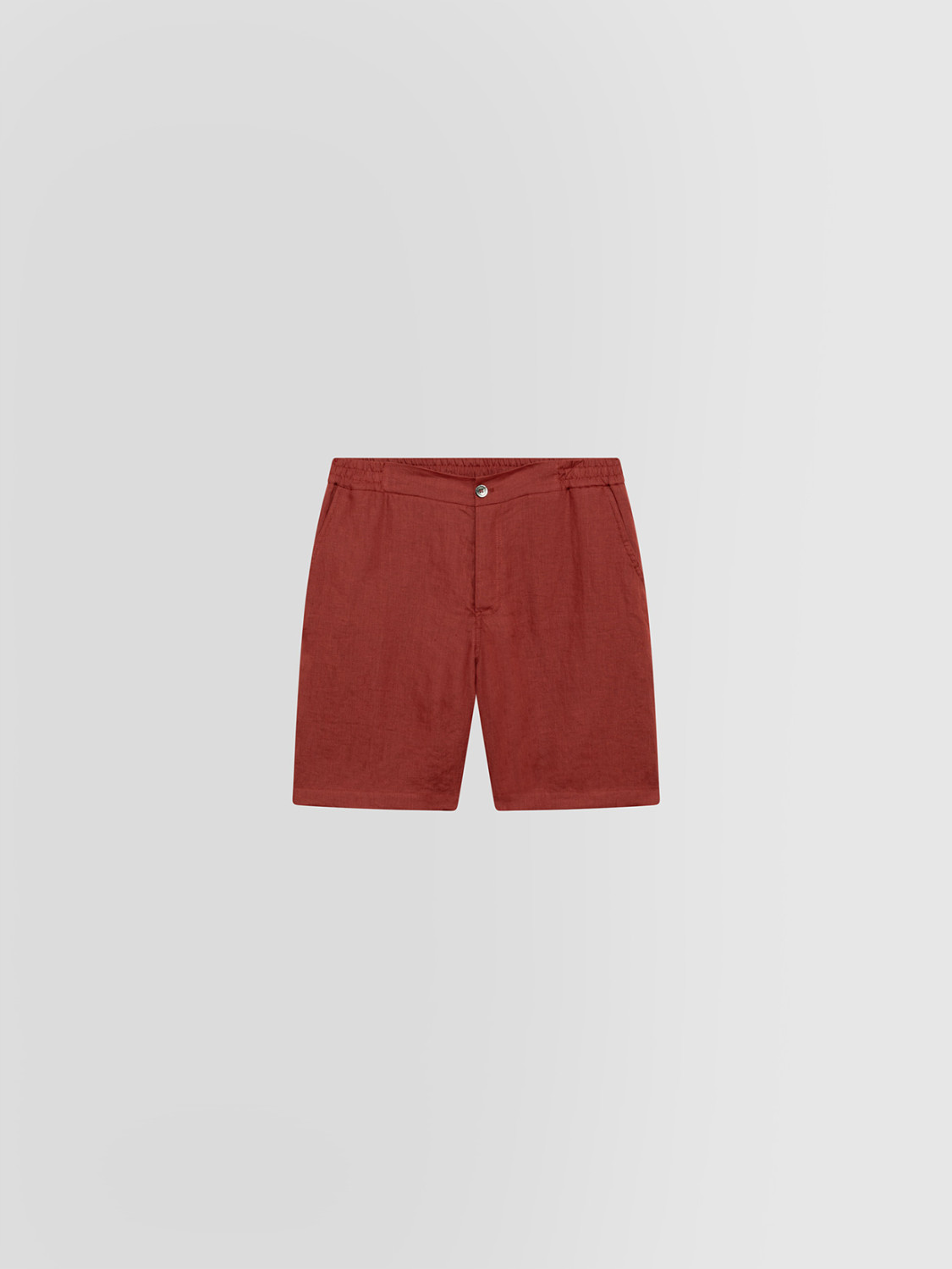 Alpha Studio bermuda in tela di lino color ruggine con vita elasticizzata