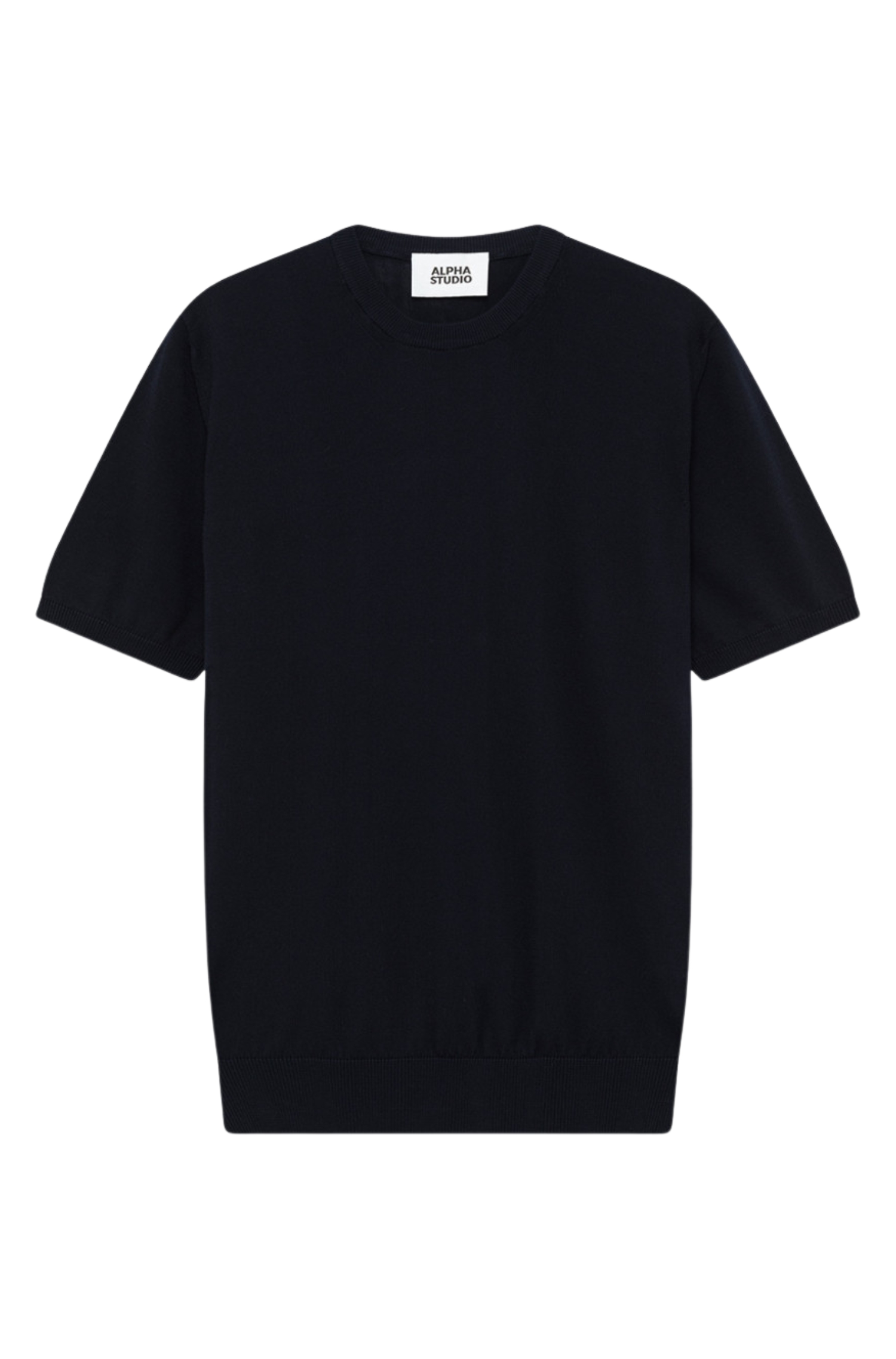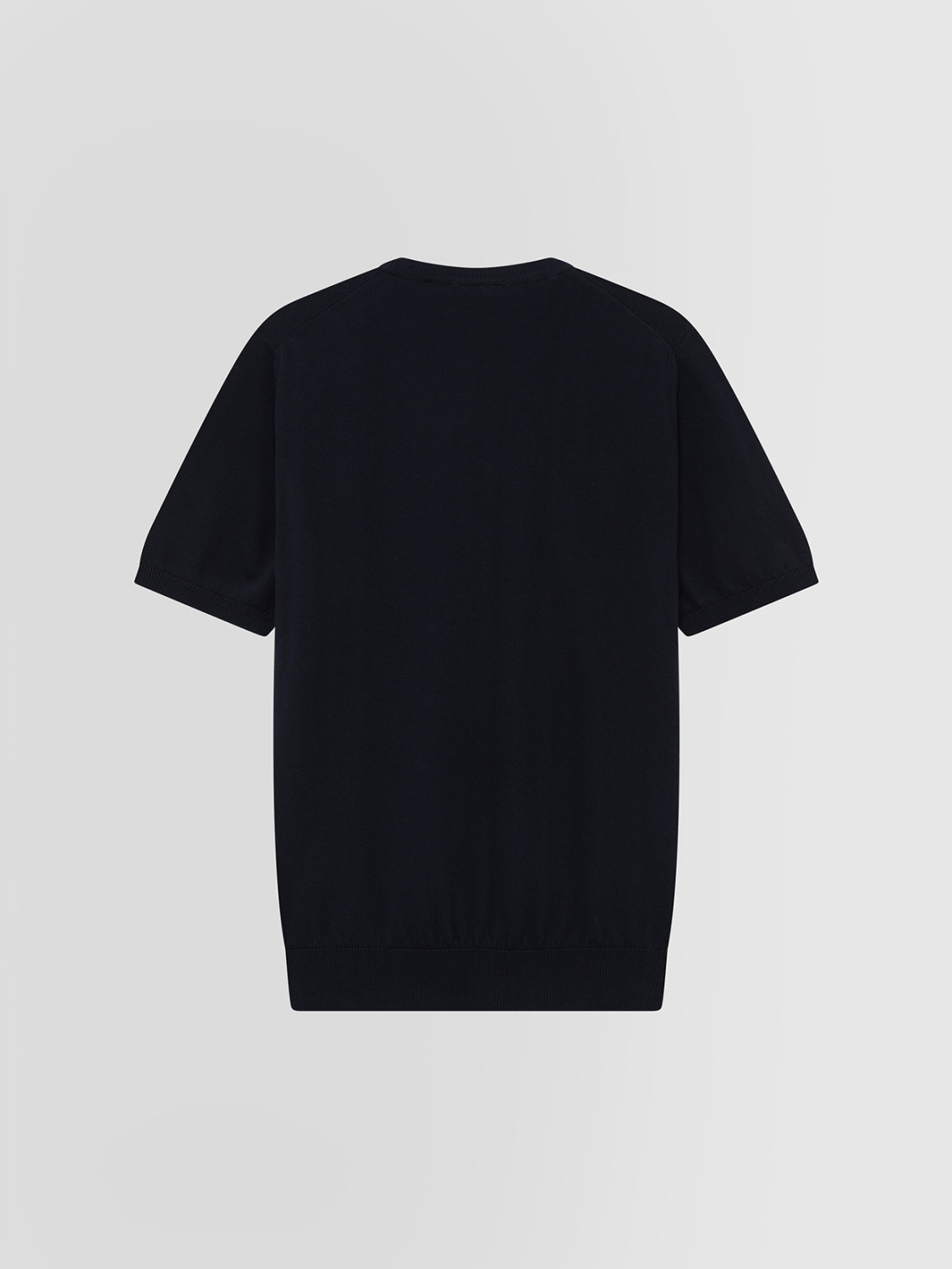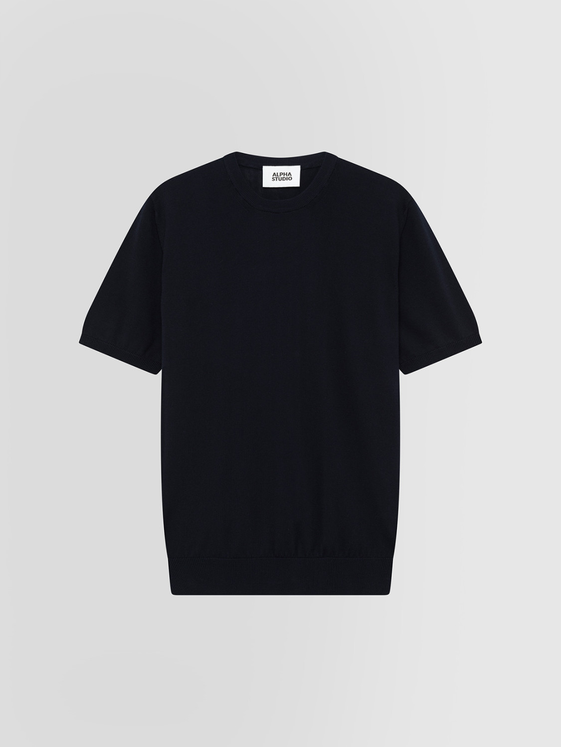 Il taglio è lineare e versatile, con girocollo classico e maniche corte, pensato per adattarsi facilmente a diversi abbinamenti. Il colore blu notte, sofisticato e senza tempo, offre unalternativa più intensa al bianco, mantenendo uneleganza discreta.