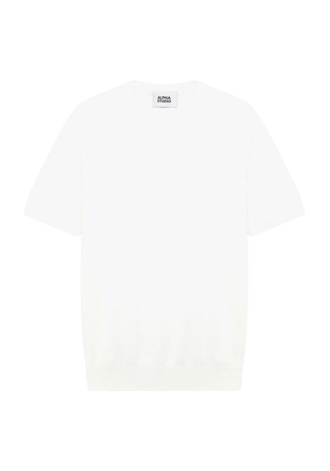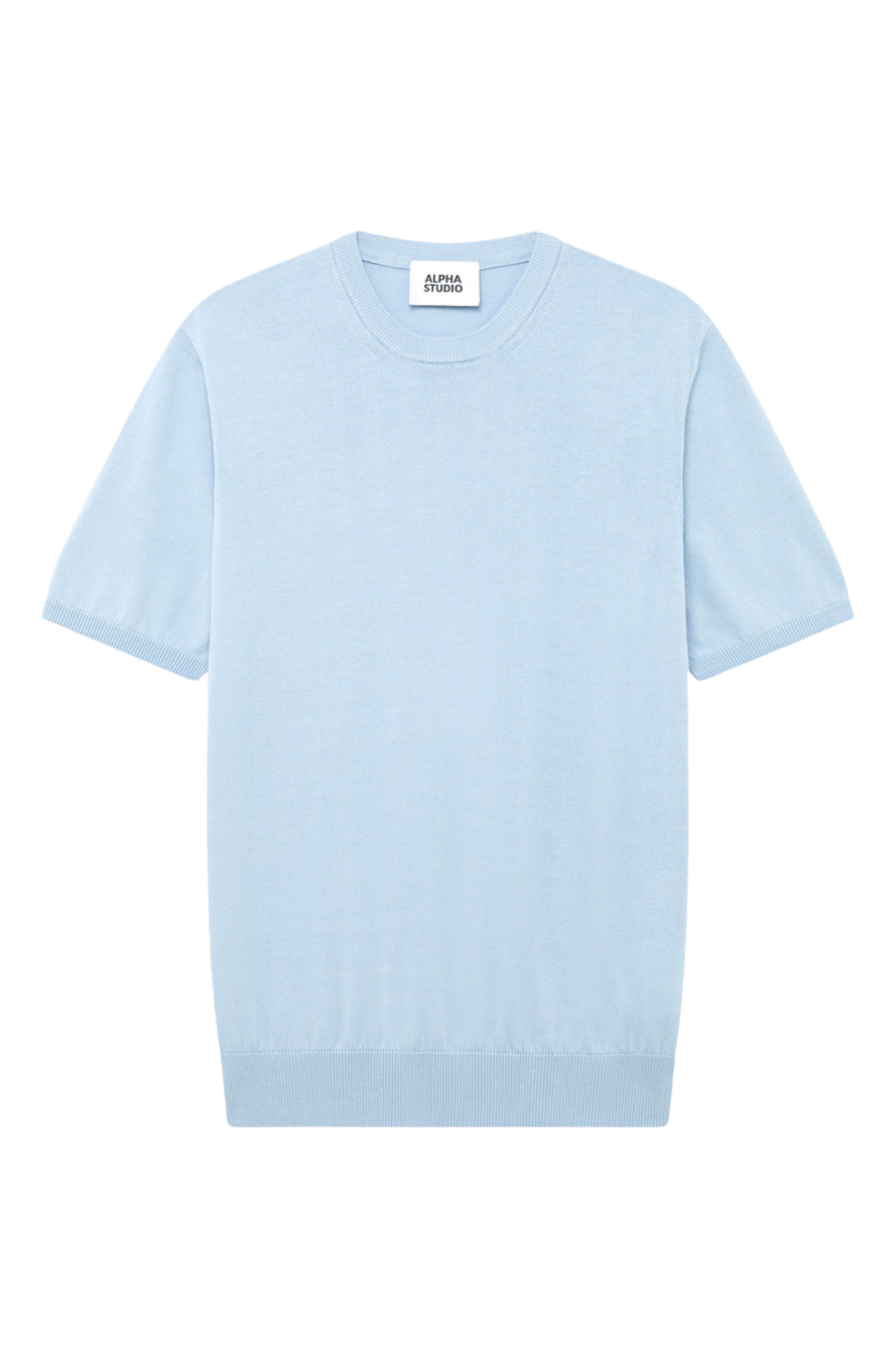 Il girocollo in crepe di cotone Alpha Studio si distingue per la sua semplicità raffinata e per una tonalità celeste luminosa e delicata, ideale per la stagione estiva. Un capo essenziale che unisce qualità dei materiali e design minimale.