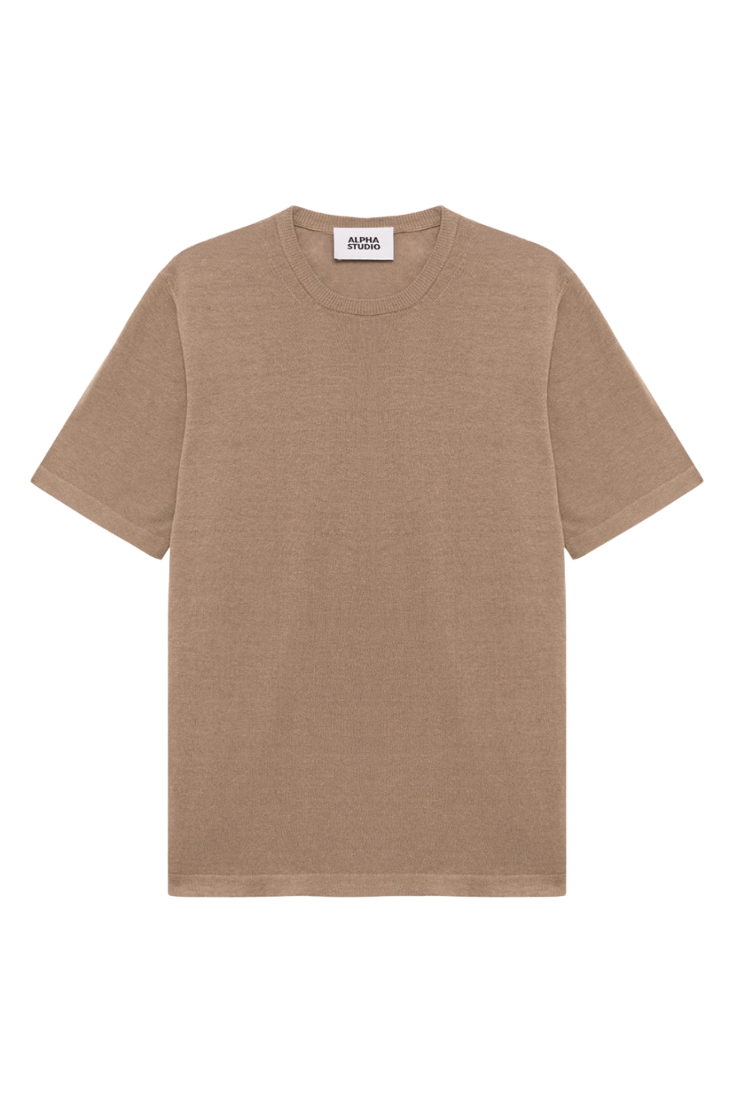 Alpha Studio t-shirt girocollo in lino e cotone colore juta