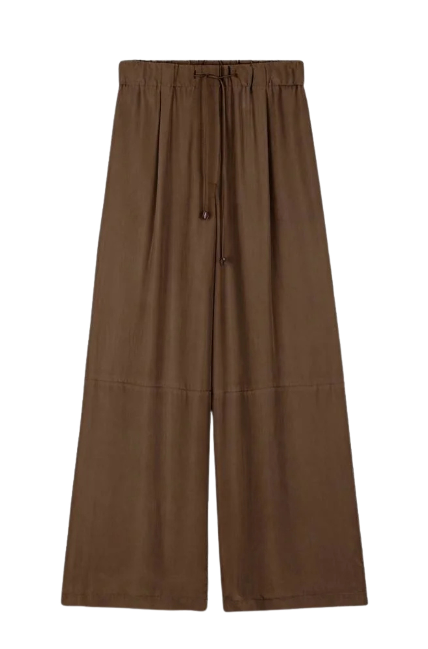 La vita elasticizzata con coulisse permette di regolare facilmente la vestibilità, assicurando comfort e adattabilità a diverse fisicità. Le tasche laterali aggiungono praticità senza appesantire il design essenziale, rendendo il pantalone ideale da abbinare a top in seta coordinati, T-shirt minimal o maglie leggere.