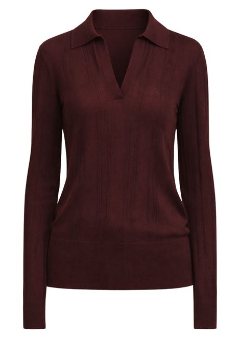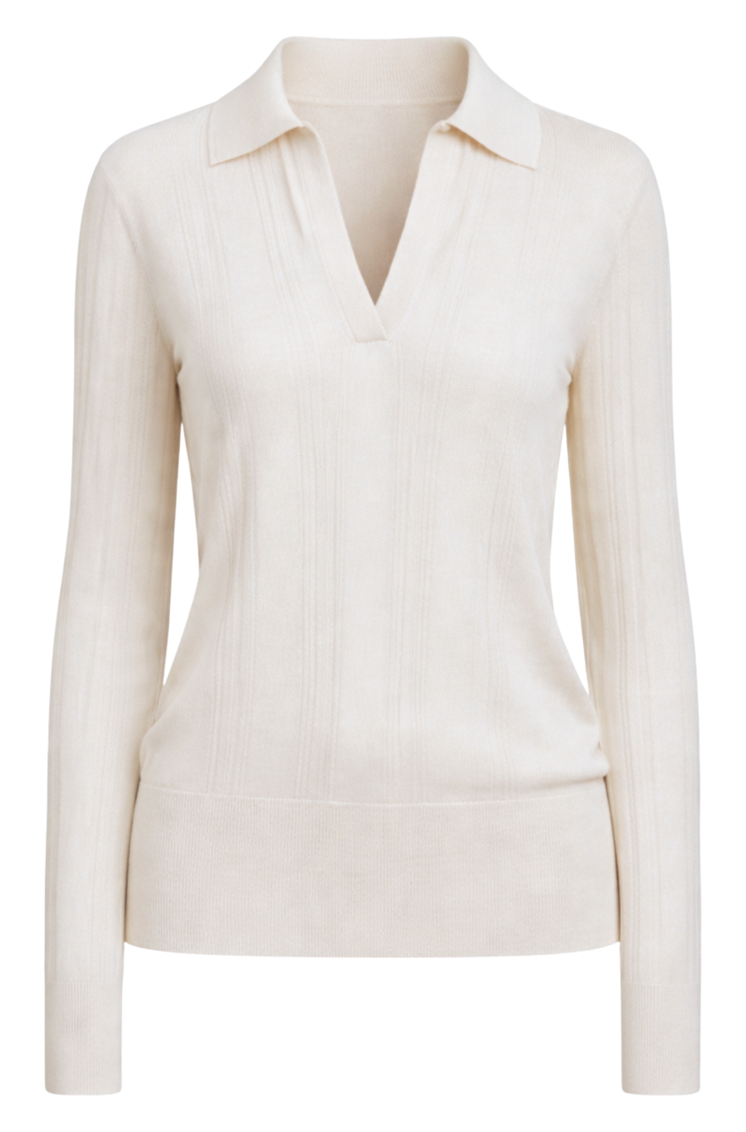 La polo in maglia ALYSI esprime unestetica raffinata e contemporanea attraverso linee pulite e materiali di alta qualità. Realizzata in pura lana, garantisce una sensazione naturale di morbidezza e comfort a contatto con la pelle. Il design con scollo a V e colletto aperto reinterpreta la classica polo in chiave femminile, mentre la maglia fine valorizza la silhouette con una vestibilità equilibrata. Le maniche lunghe con fondo leggermente allungato completano il capo con un dettaglio sofisticato, rendendolo ideale sia per look quotidiani che per abbinamenti più eleganti.