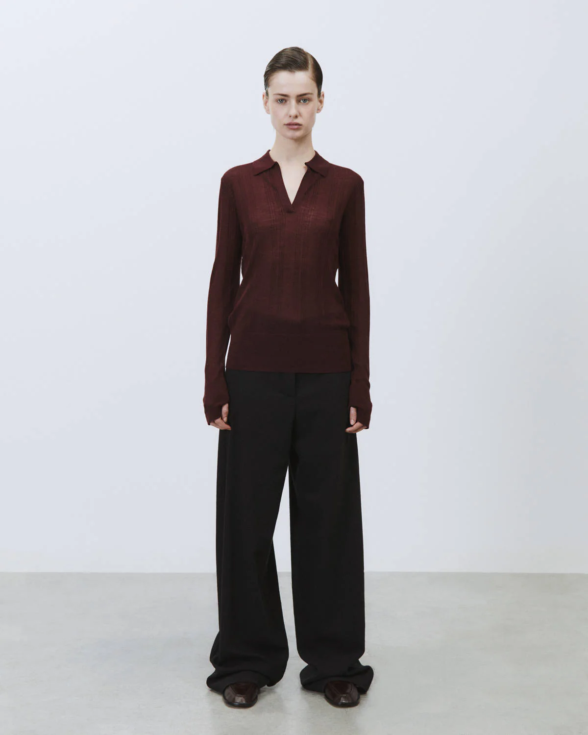La polo in maglia ALYSI interpreta leleganza contemporanea attraverso linee pulite e materiali naturali. Realizzata in pura lana, offre una mano morbida e una sensazione di comfort naturale sulla pelle. Il design con scollo a V e colletto aperto richiama lispirazione polo in chiave femminile, mentre la lavorazione a maglia fine valorizza la silhouette con una vestibilità equilibrata. Le maniche lunghe con fondo leggermente allungato aggiungono un dettaglio raffinato, rendendo il capo ideale sia per look quotidiani che per abbinamenti più ricercati.