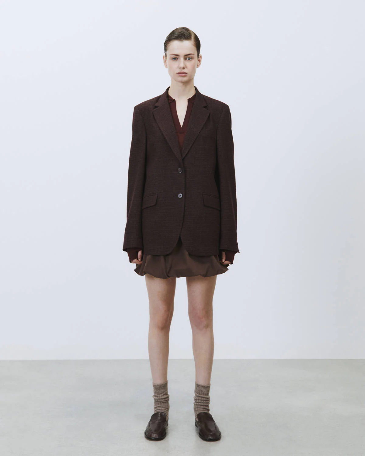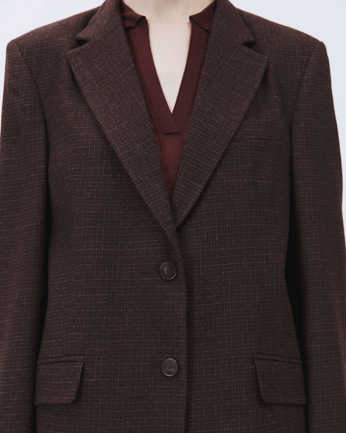 Un capo trasversale che si adatta a molteplici look: da indossare con il pantalone coordinato per un completo formale, o con denim e t-shirt per un contrasto di stile ricercato. Il blazer Wool Check è una dichiarazione di stile naturale, destinata a durare nel tempo.