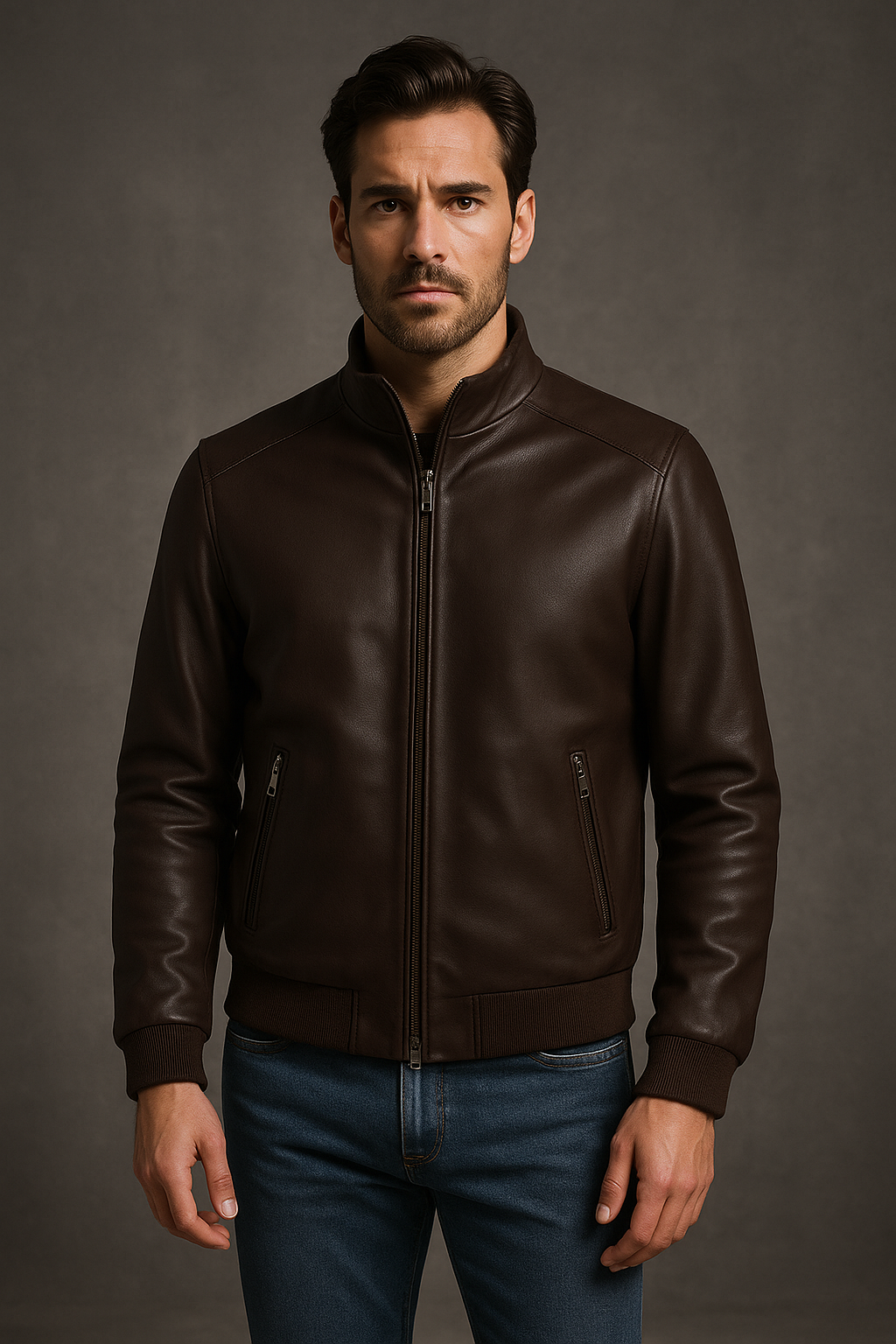 La silhouette bomber è valorizzata dal collo in piedi, dalla chiusura con zip, dai polsini e fondo in maglia e dalle tasche laterali con zip, che aggiungono praticità mantenendo un design pulito ed elegante. Perfetto per il guardaroba delluomo moderno, questo giubbotto unisce artigianalità italiana, comfort quotidiano e versatilità: ideale sia con outfit casual, sia sopra camicie o maglioni nei look più raffinati.