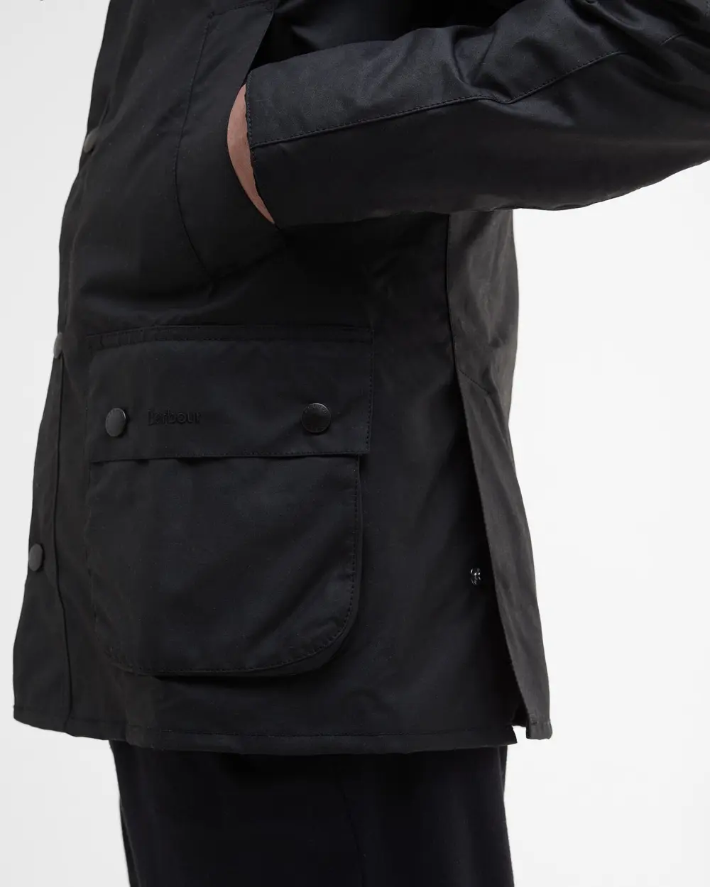 In perfetto stile Barbour, la Ashby è dotata di una chiusura antivento con bottoni a pressione robusti, colletto in velluto a coste sottili con cinturino sotto il mento e tasche scaldamani oblique che completano il look. Le ampie tasche a soffietto offrono praticità, mentre la zip frontale compatibile con rivestimenti interni opzionali rende la giacca versatile e adatta a ogni stagione.