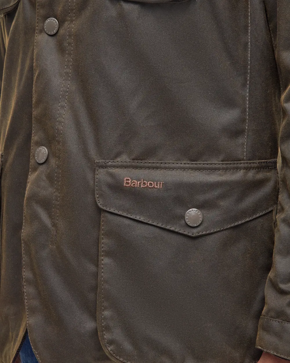 La giacca si distingue per il suo gilet trapuntato integrato, che aggiunge calore e definisce un look outdoor sofisticato. Il gilet è dotato di zip Barbour logata e si chiude fino al colletto alto per garantire massima protezione. La parte esterna presenta una chiusura a bottoni metallici, quattro ampie tasche frontali e toppe in pelle sui gomiti che ne esaltano la robustezza.