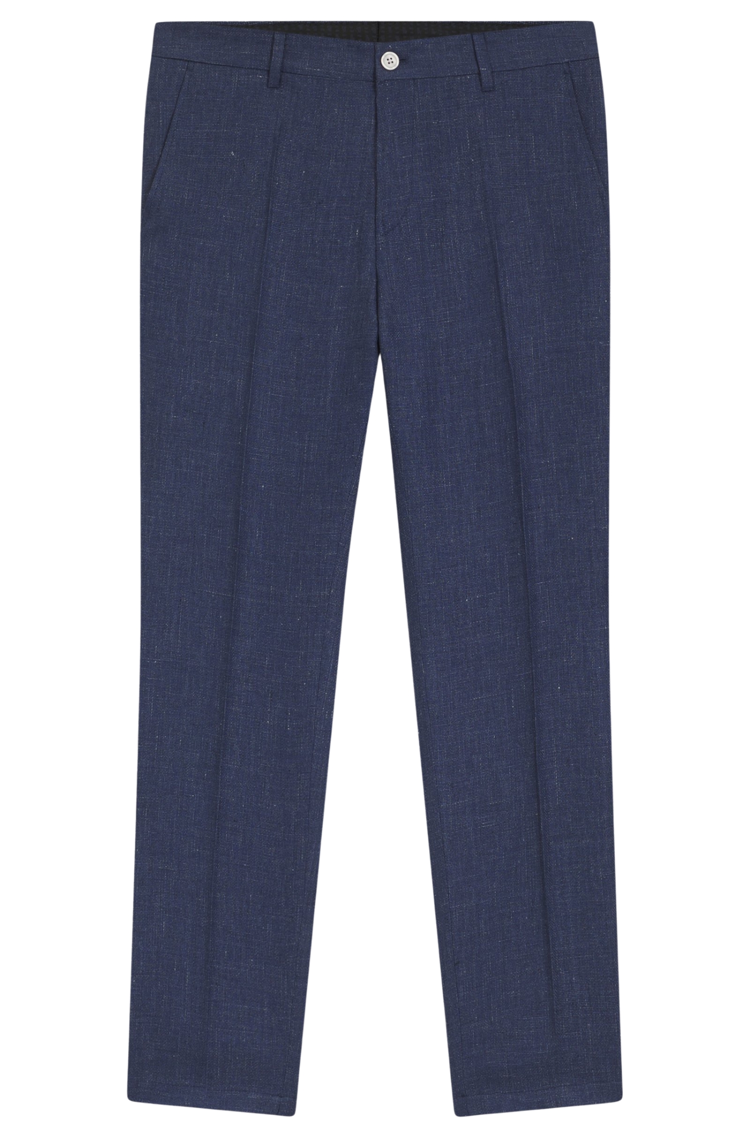 Il taglio slim fit disegna una linea moderna, più aderente su fianchi e coscia con gamba pulita verso il fondo, adatta sia a scarpe classiche sia a mocassini. Il design a parte frontale piatta (senza pinces) enfatizza il look minimale e contemporaneo, ideale per outfit business-estivi e occasioni eleganti informali.