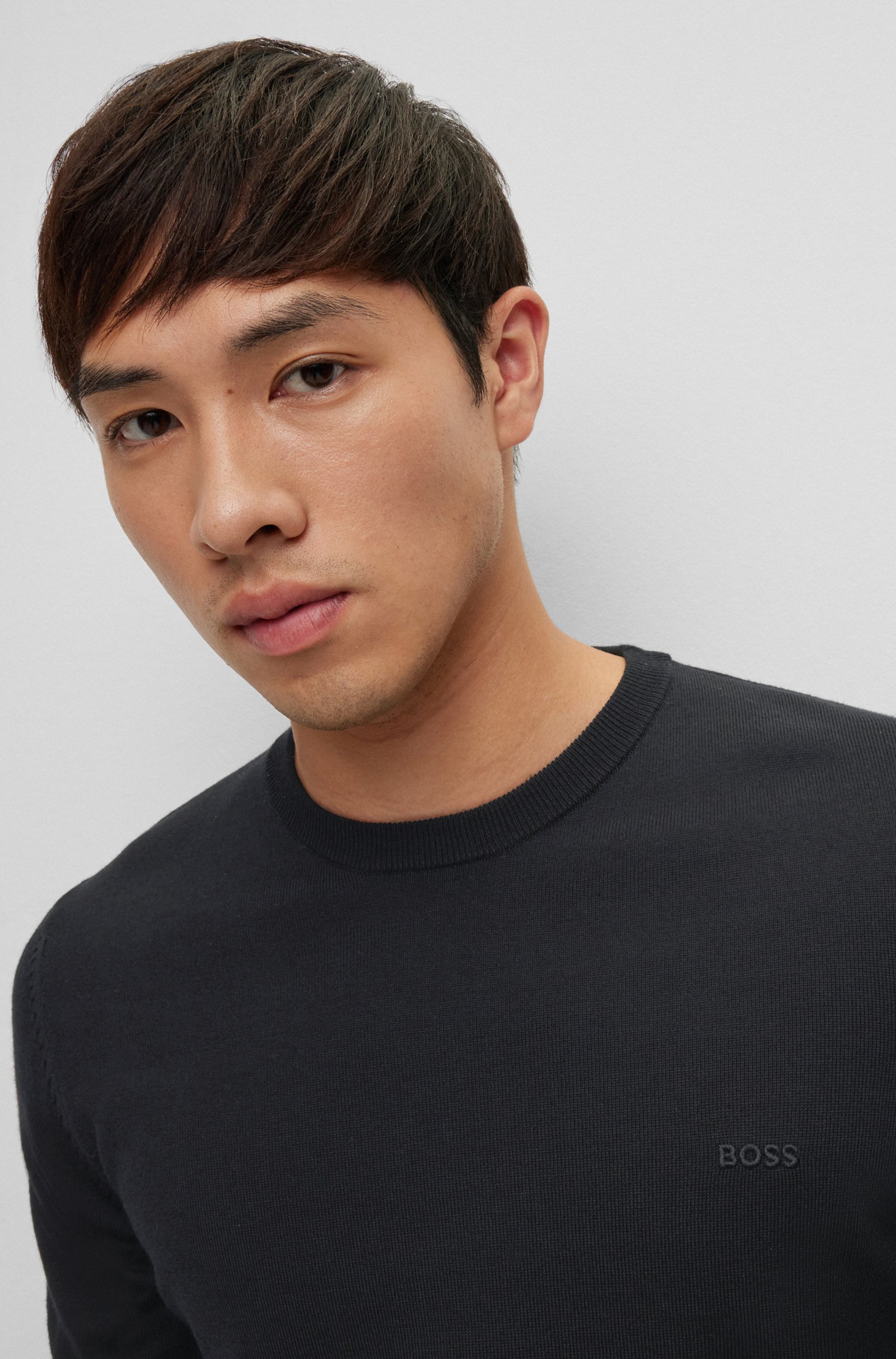 Un versatile maglione BOSS Uomo. Caratterizzato da un logo ricamato sulla parte sinistra del petto per un tocco di stile esclusivo, questo elegante maglione regular fit presenta righe tipiche del marchio all'interno della scollatura a girocollo. Per i nostri prodotti RESPONSIBLE usiamo sempre almeno il 60% di materie prime più sostenibili. Questo capo è realizzato con lana certificata e proveniente da allevamenti responsabili. Per noi, essere un allevamento responsabile significa essere mulesing-free e rispettare gli standard previsti dalle Cinque libertà per la tutela degli animali.