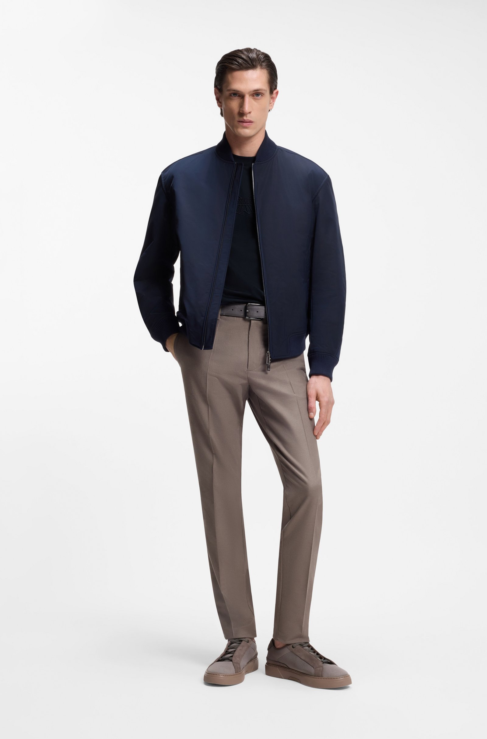 Il design è completato da girocollo con bordo a costine, maniche corte e piccoli spacchi laterali al fondo, che aggiungono comfort di movimento e un dettaglio sartoriale in più. La capsule BOSS x ASTON MARTIN esprime così maestria e sofisticazione, unendo codici premium e riferimenti al mondo delle auto sportive.