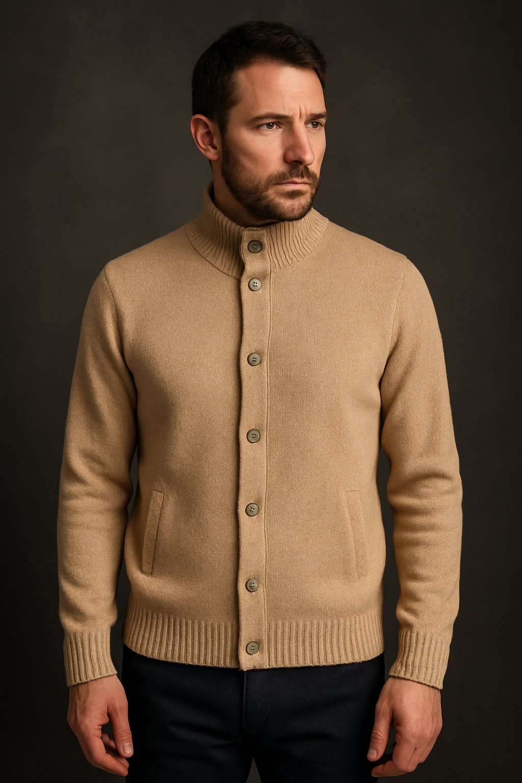 Cardigan Uomo in Lana Cavalieri Milano Colore Tortora