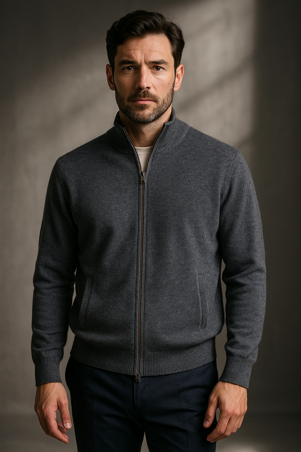Giacca in Maglia Uomo con Zip in Lana Merino e Cashmere Cavalieri Milano