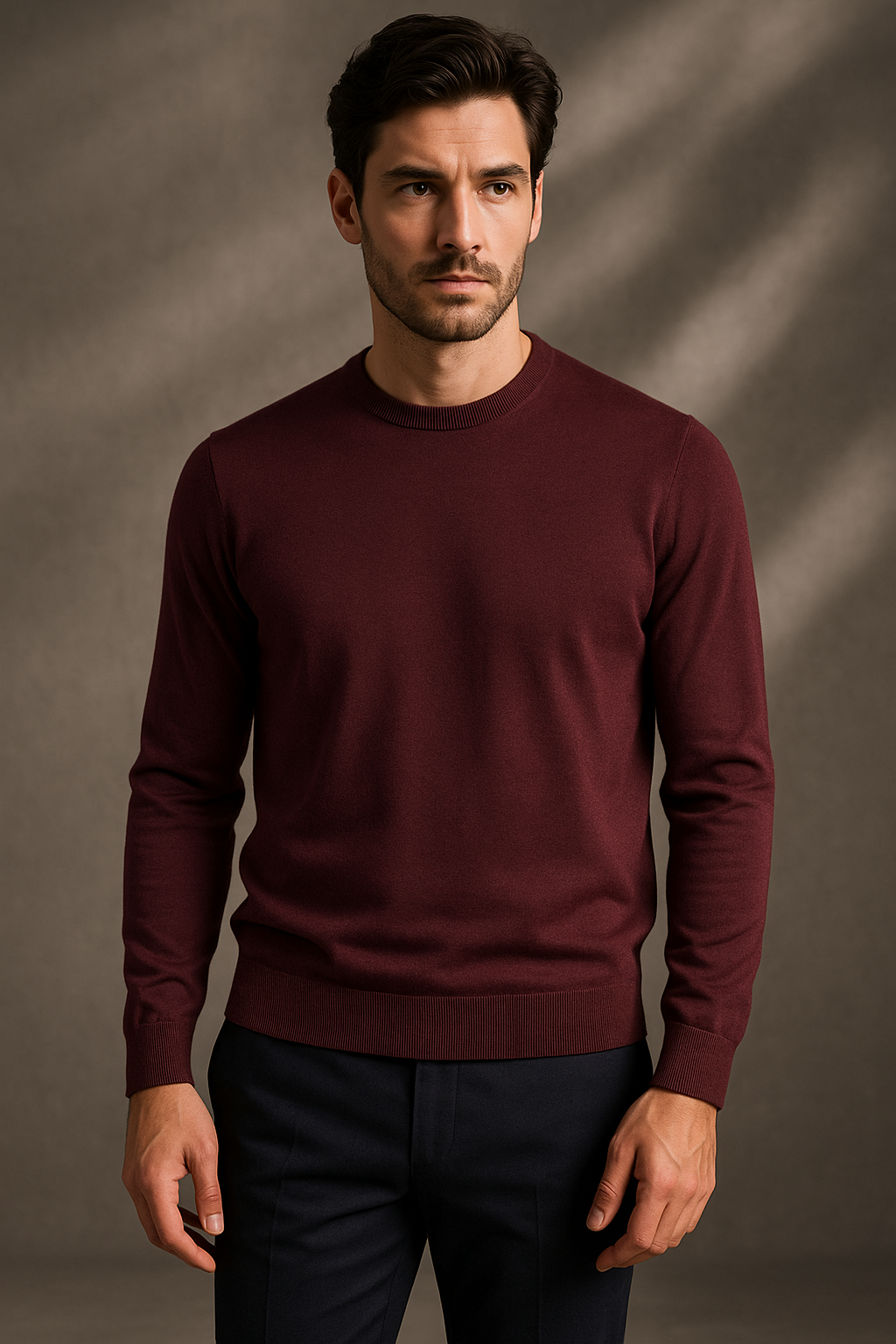 Maglia Girocollo Uomo Cavalieri Milano in Lana Merino, Cashmere e Seta Bordeaux