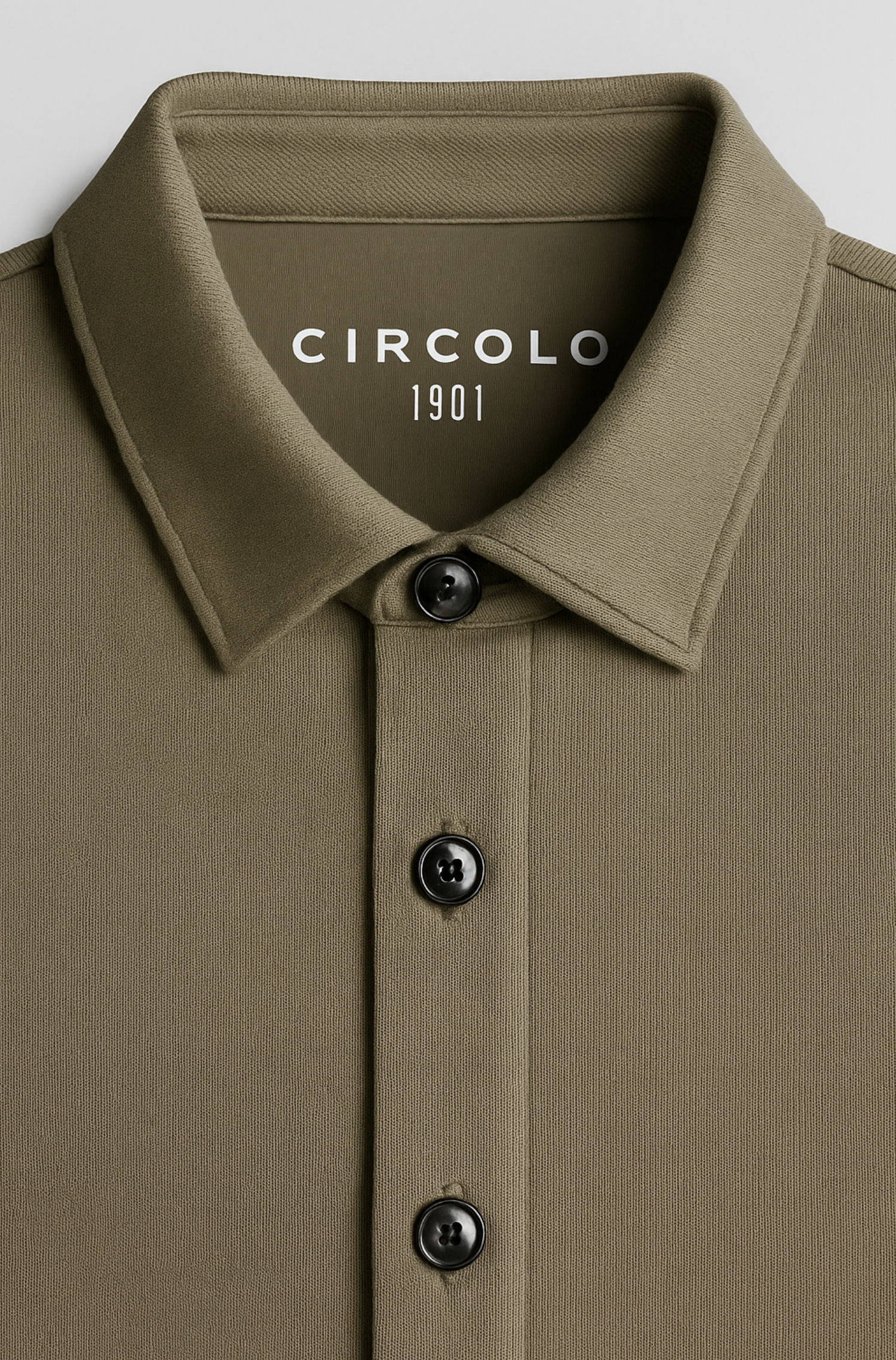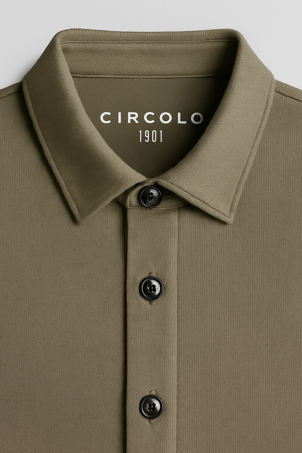 La giacca monopetto firmata Circolo 1901 rappresenta lequilibrio perfetto tra comfort e raffinatezza. Realizzata in tessuto piqué elasticizzato color Dark Leaf, un verde profondo e versatile, offre unestetica minimal ed elegante con una vestibilità rilassata. Il modello è caratterizzato da colletto a camicia, chiusura con bottoni tono su tono, e due ampie tasche applicate frontali, che conferiscono un tocco utility ma discreto. Il tessuto in cotone elasticizzato mercerizzato garantisce una sensazione di morbidezza al tatto e libertà nei movimenti, mantenendo al contempo una forma strutturata. Ideale per look smart-casual, questa giacca può essere indossata sopra una t-shirt o una camicia leggera per affrontare le mezze stagioni con stile e comfort.