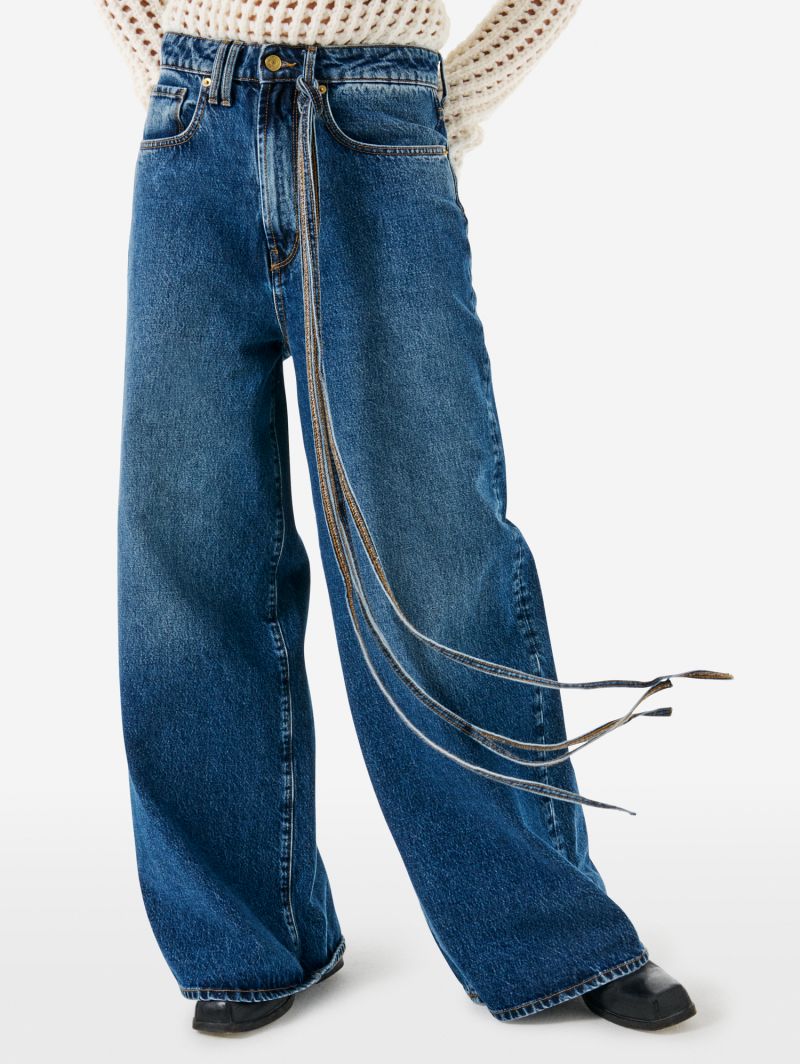 Scopri i jeans donna Cycle modello Big Low Super Wide Leg 452P557 colore 07 navy blue. Realizzati in Rigid Pure Indigo Denim 100% cotone da 14 oz, presentano cinque tasche, vita bassa e gamba extra ampia con lunghezza extra, cavallo sceso e cinturina coordinata removibile. Il lavaggio stone wash brushed crea un effetto vissuto e distintivo sul tessuto. Dotati di doppio passante frontale, passanti posteriori incrociati e logo Cycle placcato sulla tasca posteriore. Made in Italy, perfetti per uno stile audace e moderno.