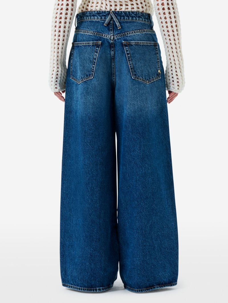 Jeans Donna Super Wide Leg Vita Bassa Navy Blue Stone Wash