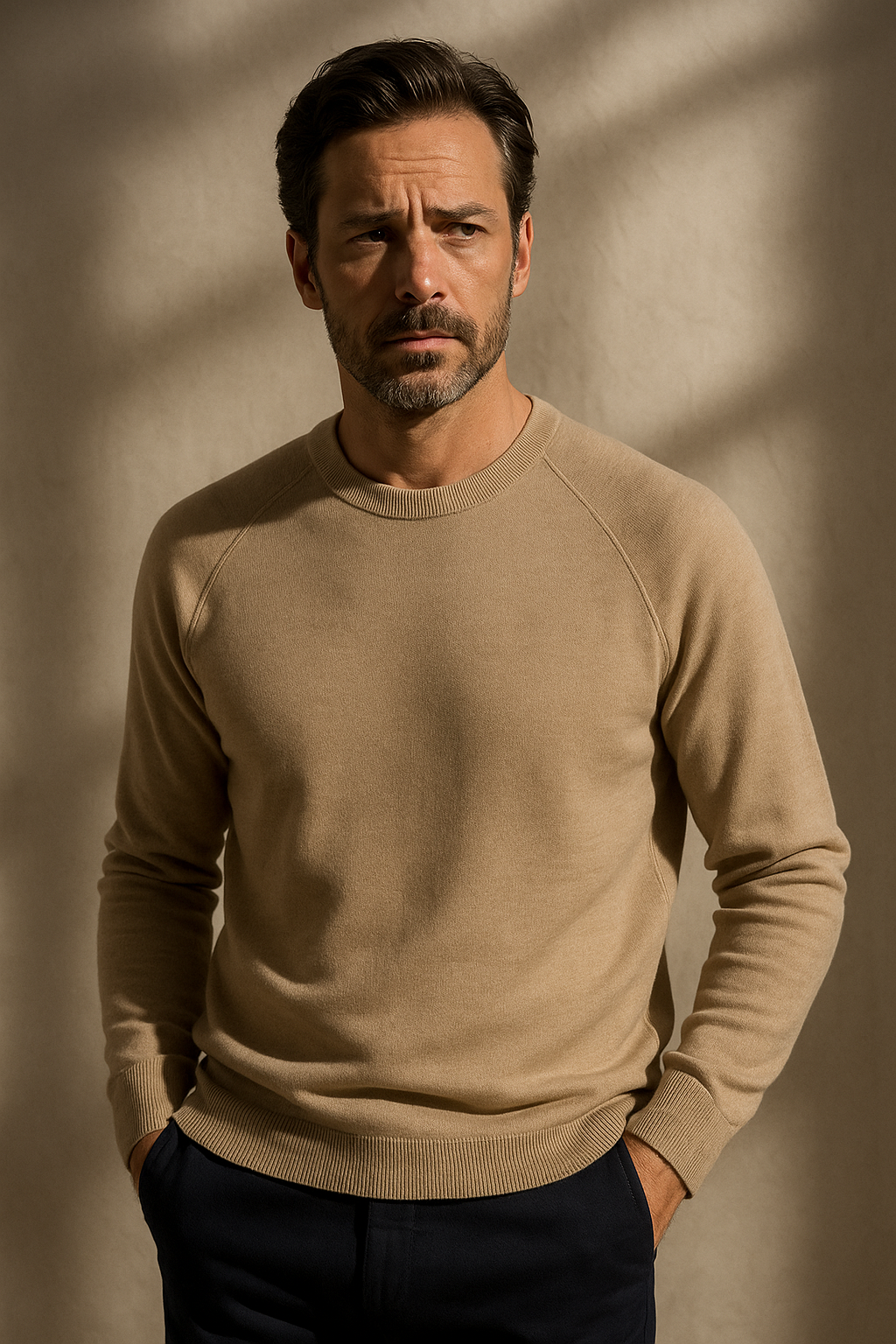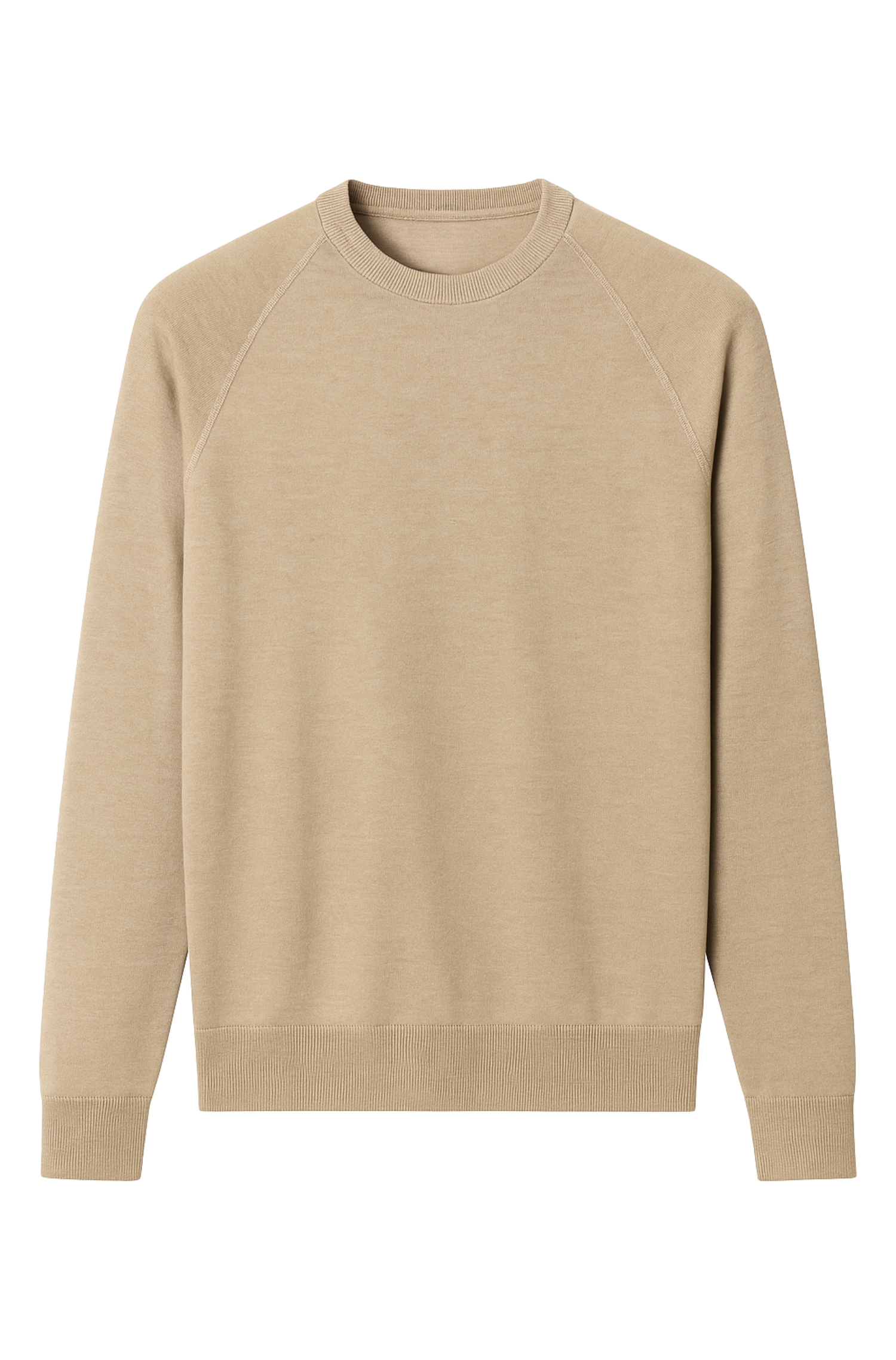 Il modello presenta un design essenziale impreziosito da maniche raglan, che migliorano comfort e vestibilità. Il colore beige dona luminosità e grande versatilità, ideale per chi desidera un capo facile da abbinare sia in contesti casual sia più ricercati.