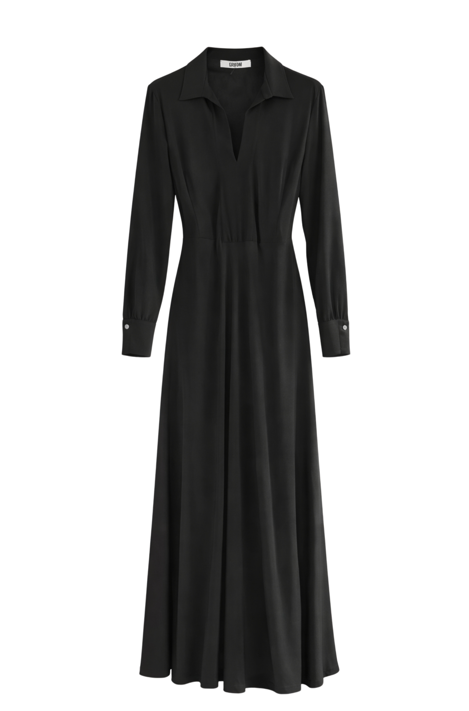 Abito lungo firmato Grifoni, espressione di uneleganza senza tempo e di una qualità sartoriale autenticamente italiana. Il design pulito è valorizzato da una linea fluida che accompagna la silhouette con naturalezza, rendendo il capo adatto sia a contesti formali che a occasioni serali più ricercate.