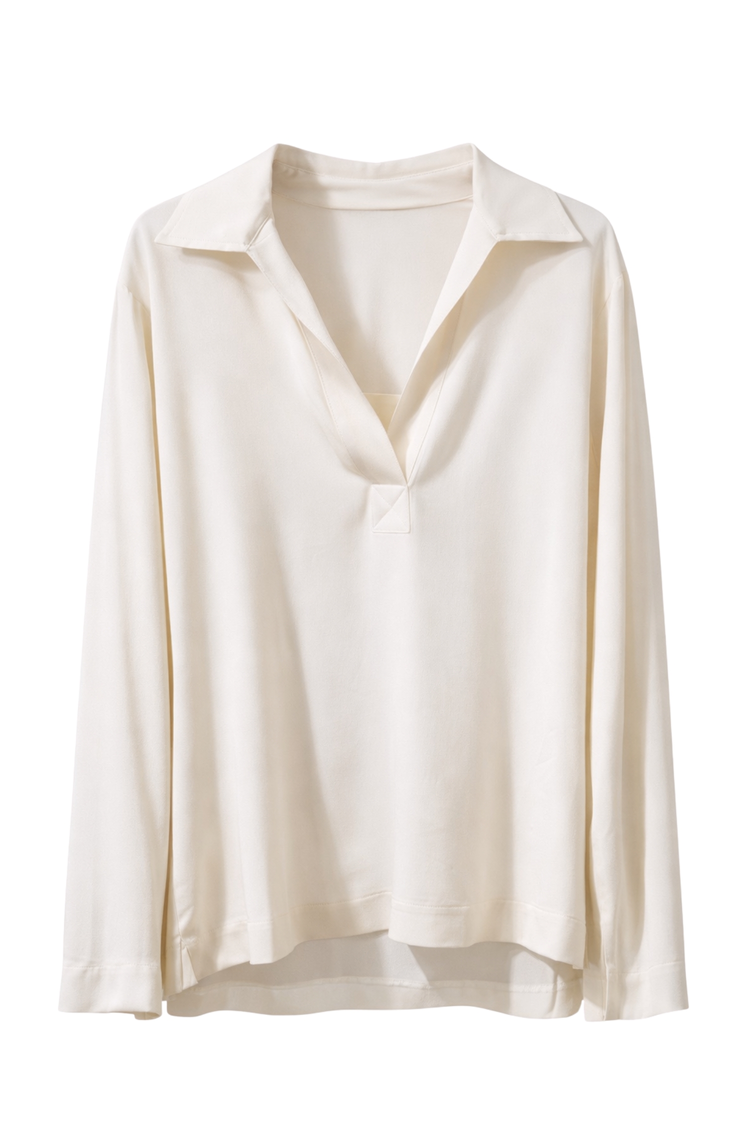 Blusa JUCCA in raffinata tonalità avorio, caratterizzata da un elegante collo polo e da una linea fluida. Un capo essenziale e sofisticato, ideale per completare look quotidiani e formali con naturale eleganza.