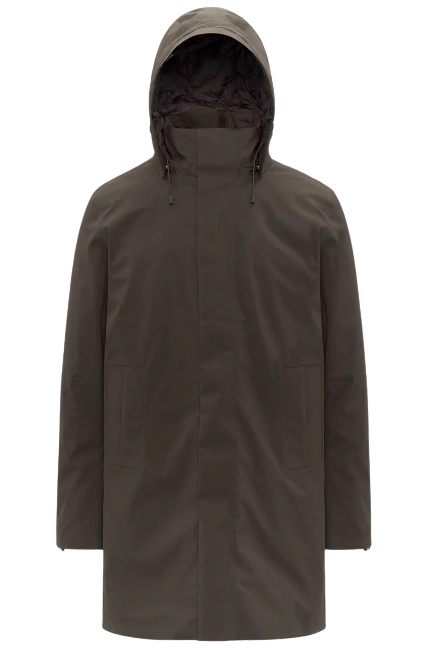 Limbottitura in ovatta, abbinata alla trapuntatura interna, assicura un elevato grado di calore mantenendo leggerezza e comfort. Il collo alto protegge efficacemente dal vento, mentre il cappuccio è staccabile e regolabile tramite coulisse. La chiusura frontale con zip coperta e la patta antivento migliorano ulteriormente isolamento e praticità.