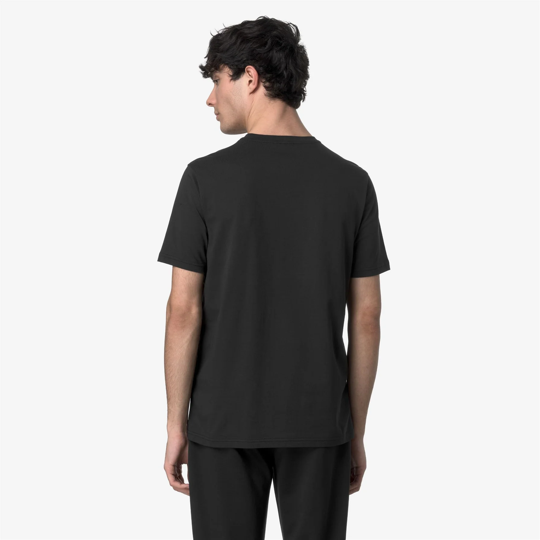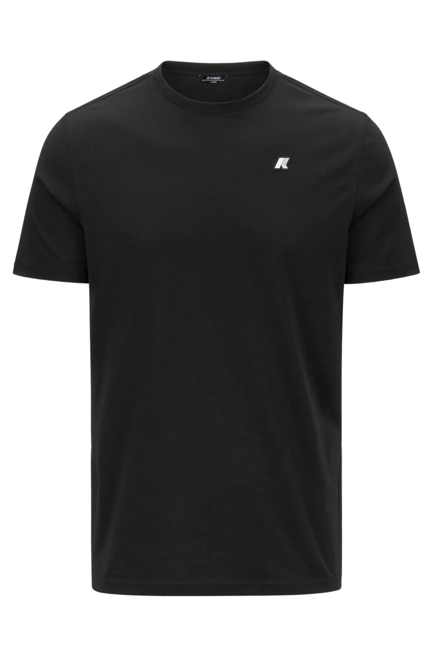 La vestibilità slim disegna una linea asciutta e moderna senza risultare eccessivamente aderente, valorizzando la silhouette e mantenendo un comfort naturale nei movimenti. Il collo a giro classico e le maniche corte completano un design pulito e versatile, perfetto come pezzo singolo o come strato sotto felpe, giubbini e capispalla K-Way.