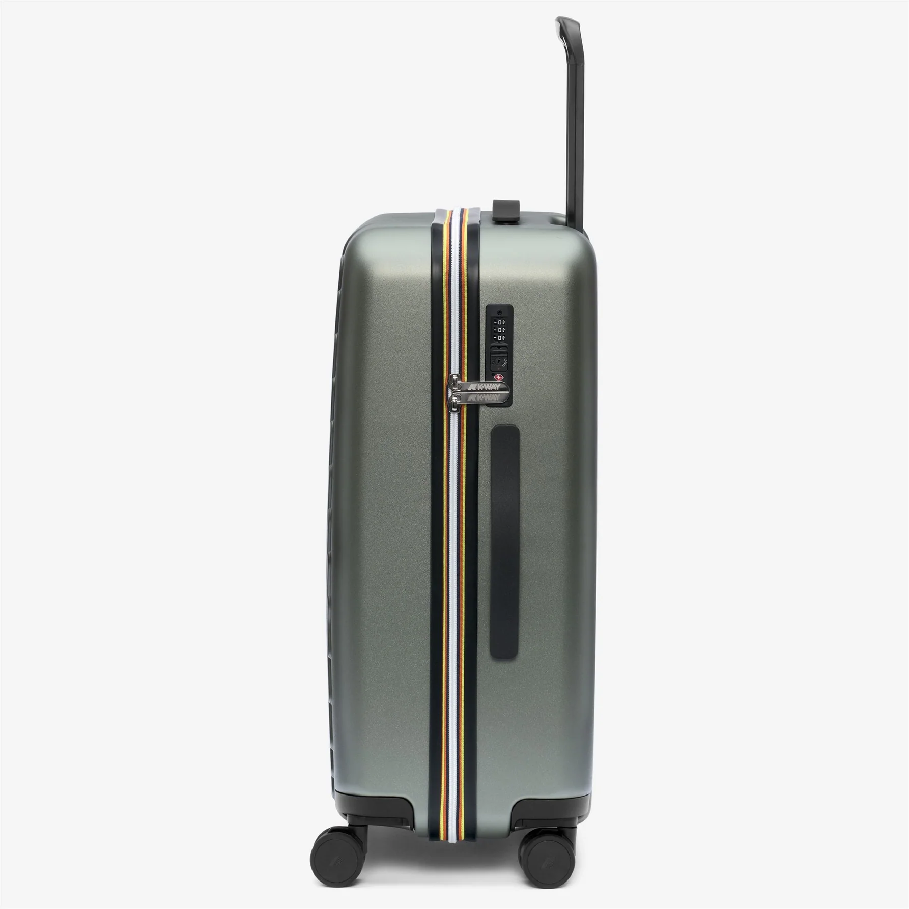 Il sistema di chiusura a combinazione con TSA è conforme agli standard di sicurezza degli aeroporti internazionali, permettendo agli addetti ai controlli di ispezionare il bagaglio senza danneggiare la serratura. Grazie alle misure di circa 64 x 43 x 25 cm e alla costruzione rigida, Eudoxieur Logo si propone come un compagno di viaggio affidabile, organizzato e in linea con lestetica pulita K-Way.