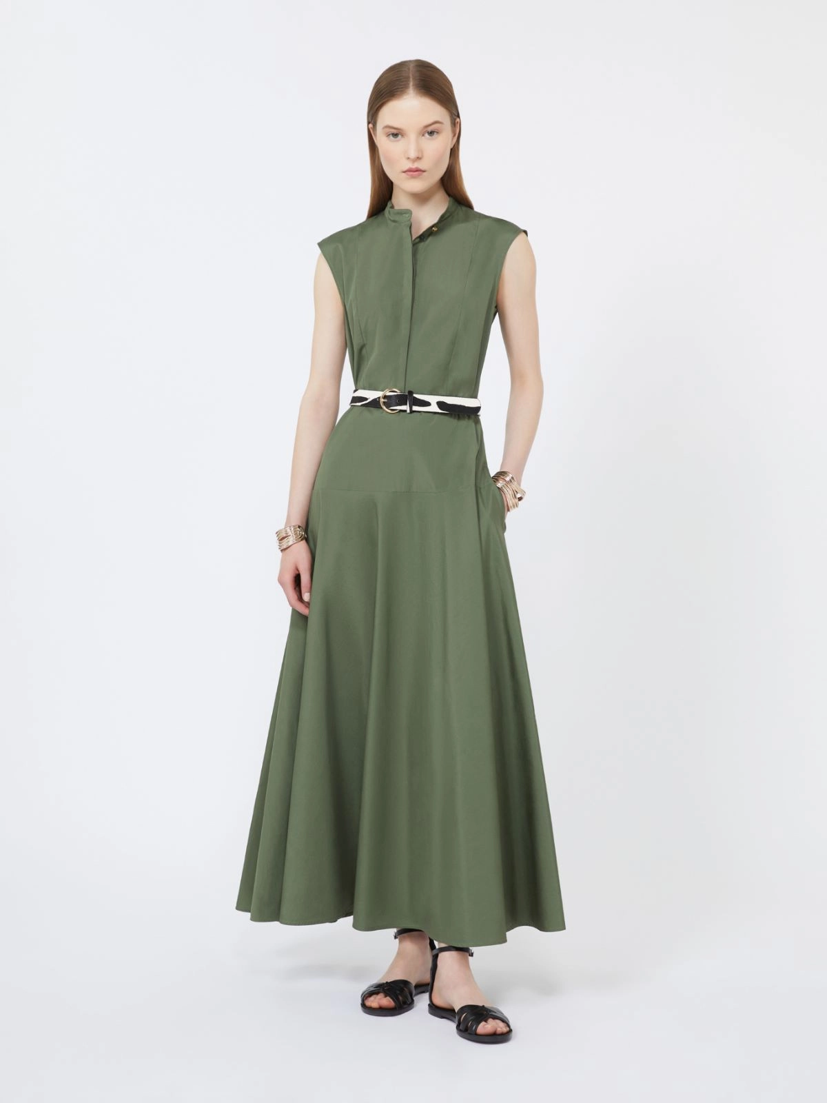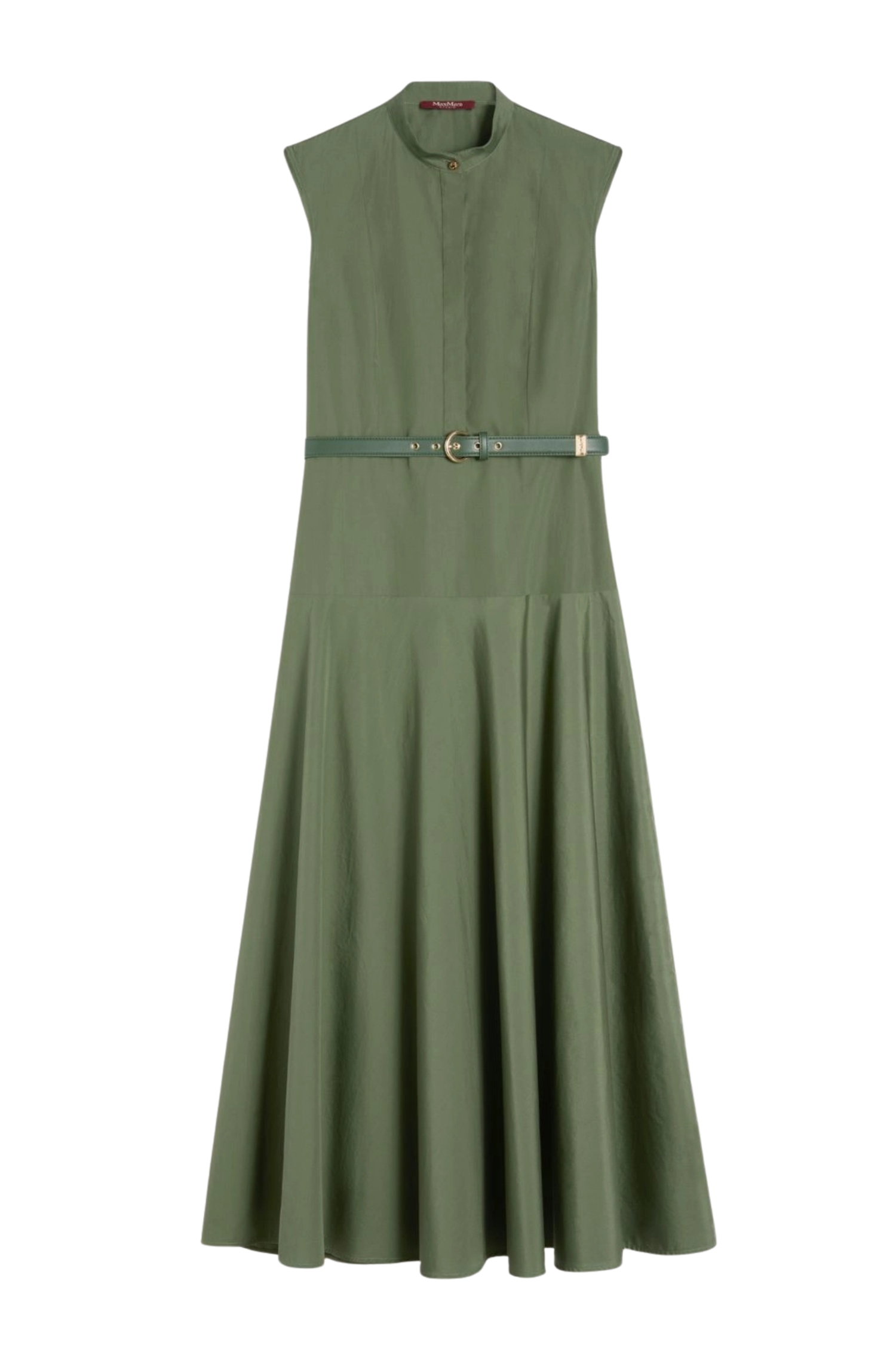 Abito Max Mara a ruota in popeline di cotone verde kaki