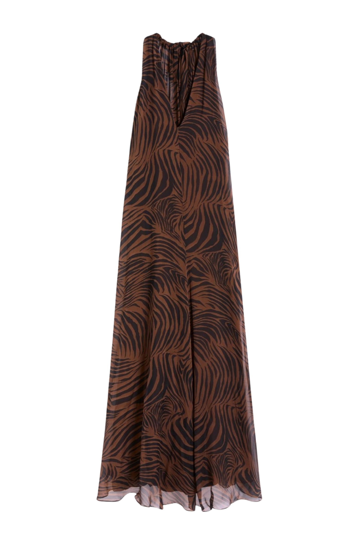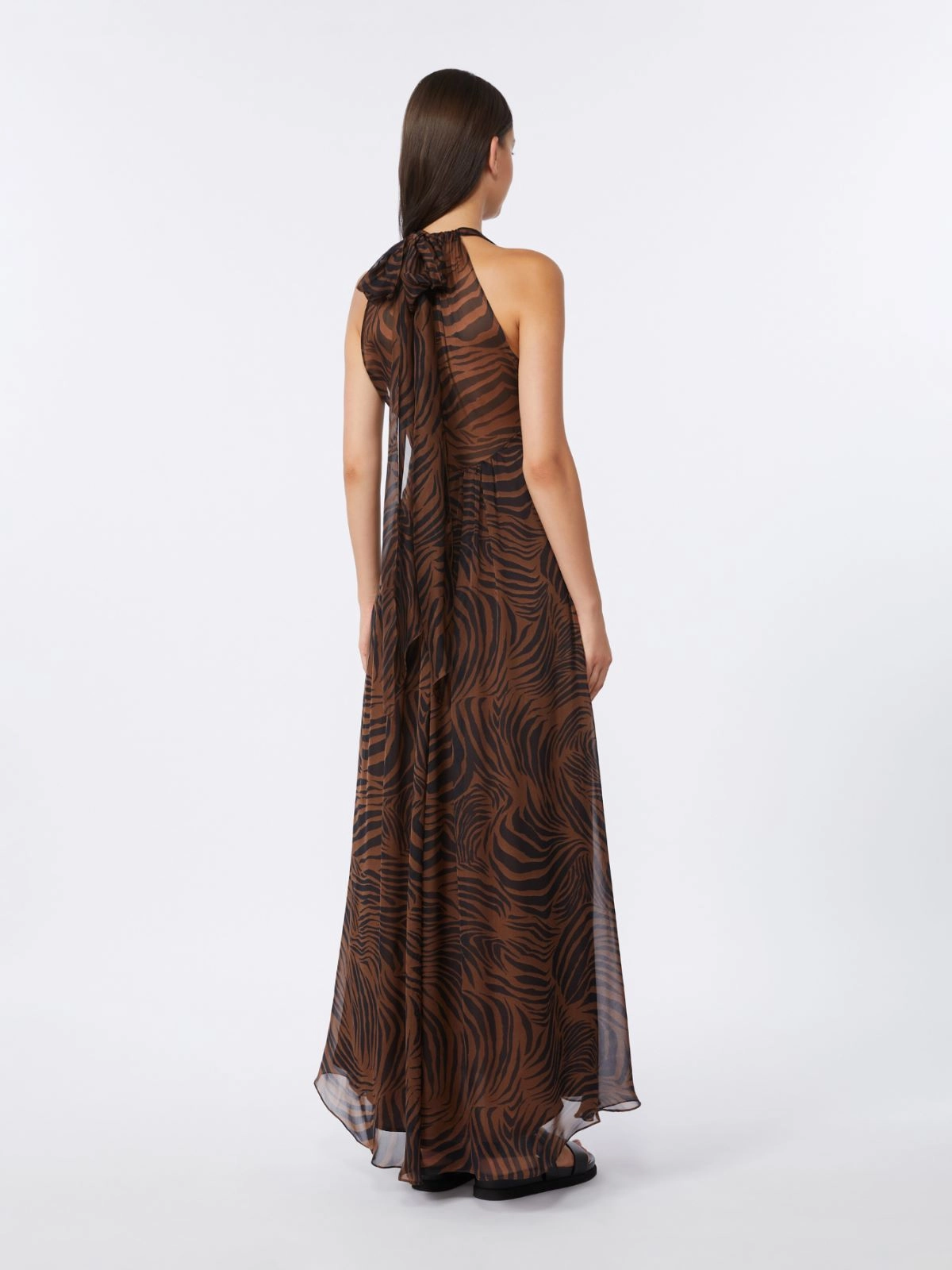 Abito Max Mara lungo in chiffon di seta stampato marrone