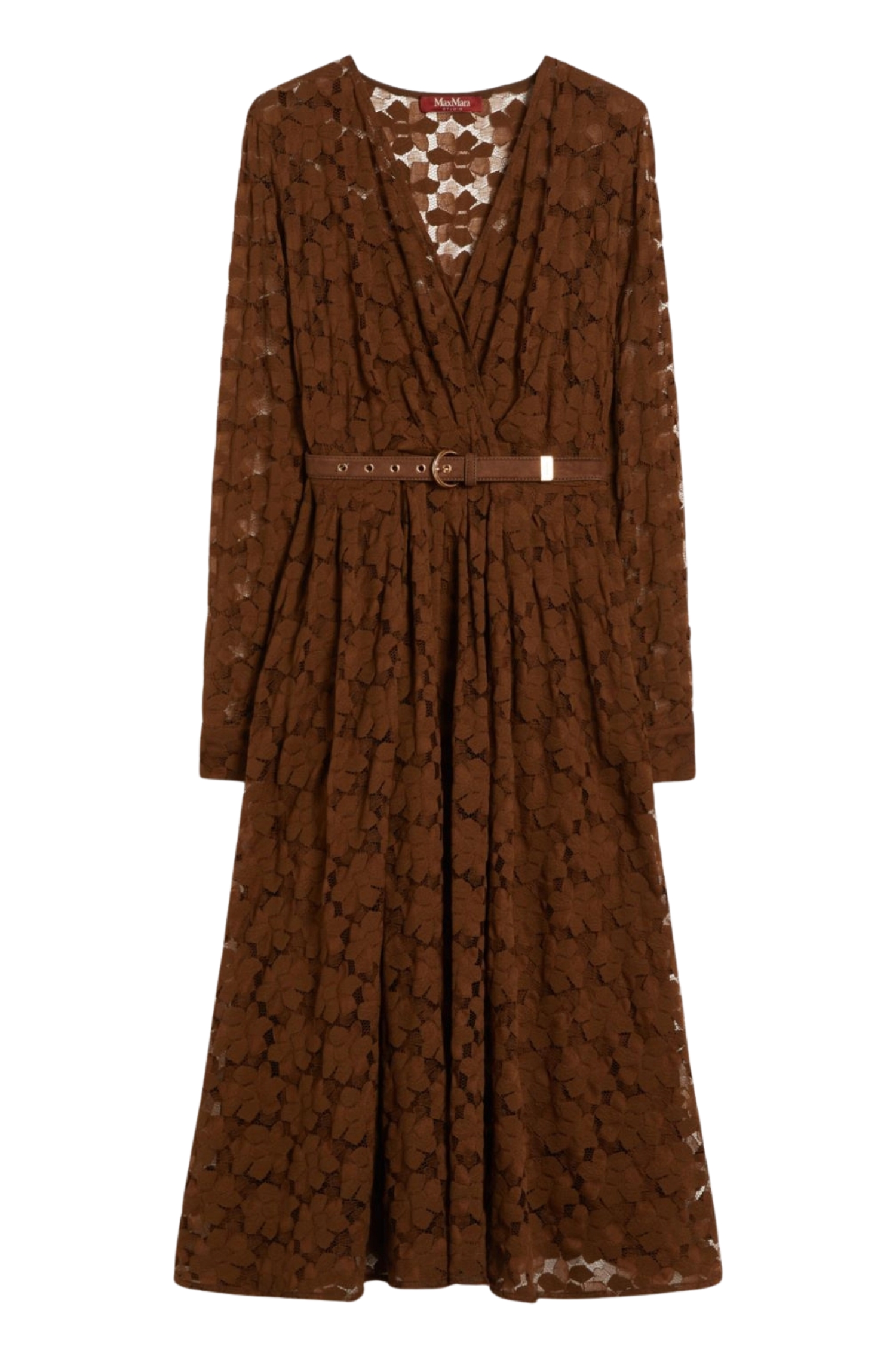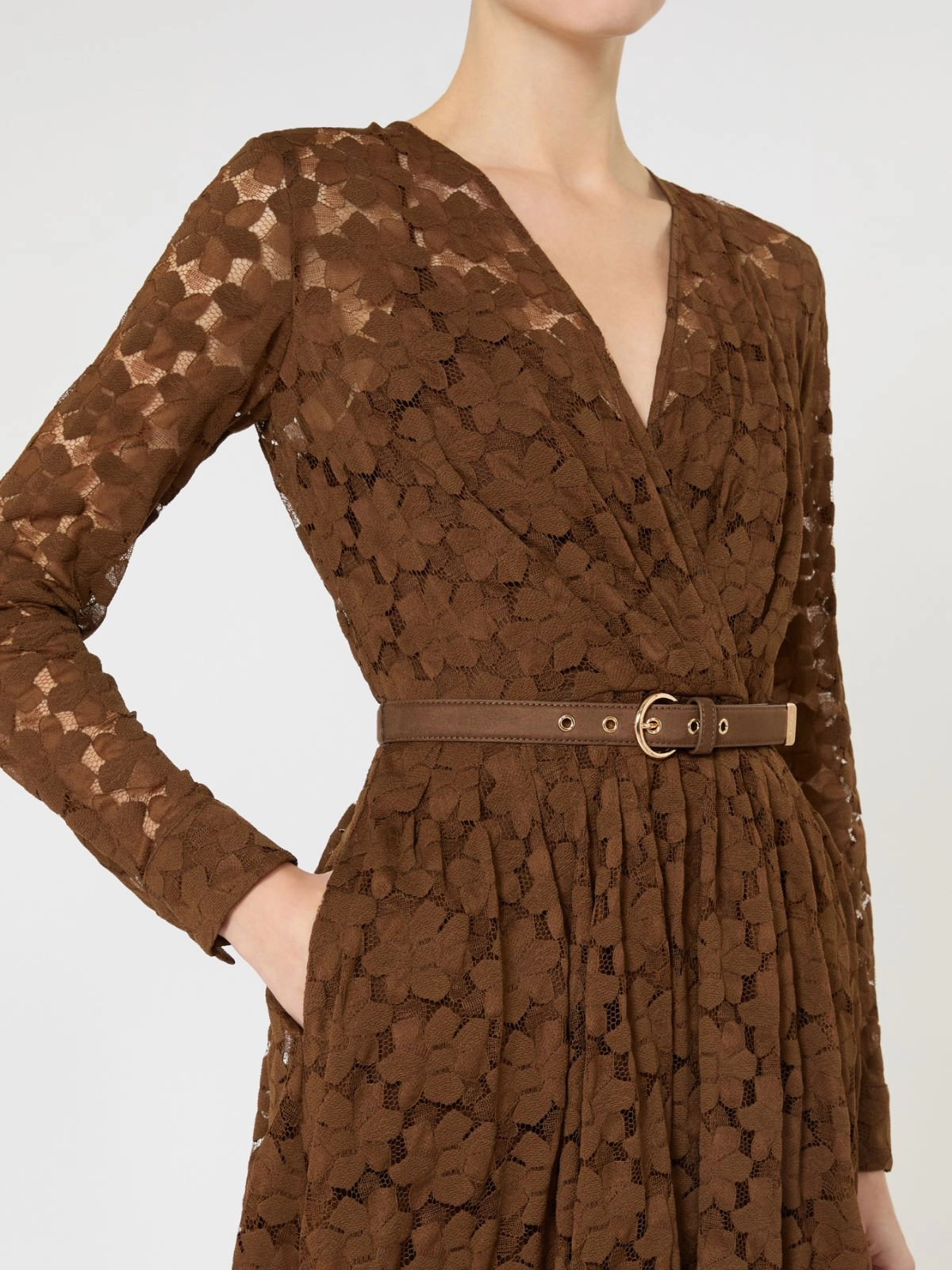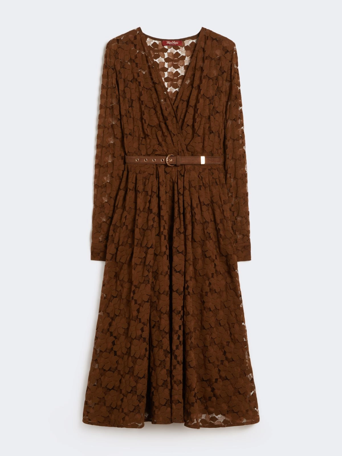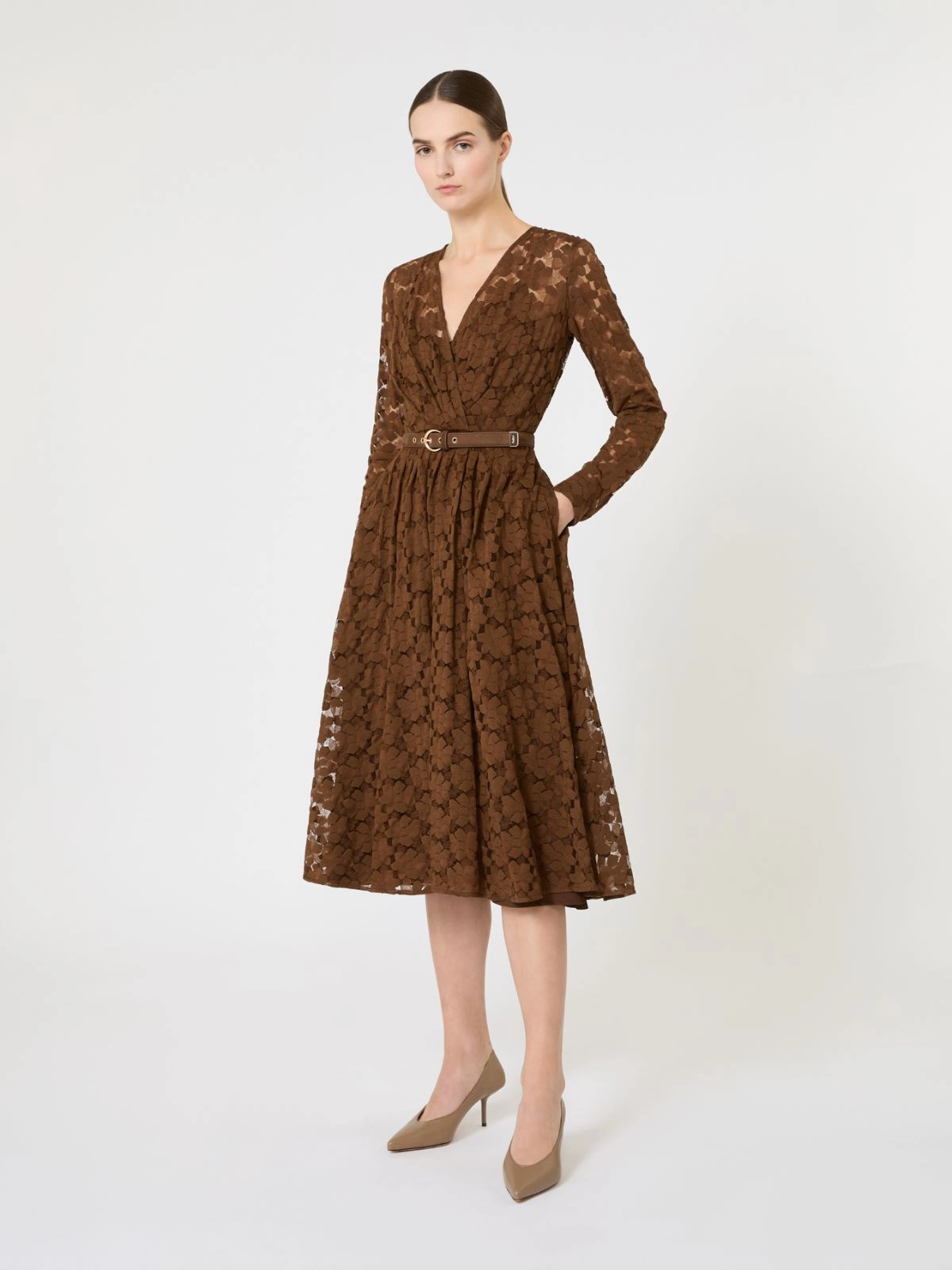 Abito Max Mara midi in tulle cioccolato con pizzo floreale geometrico