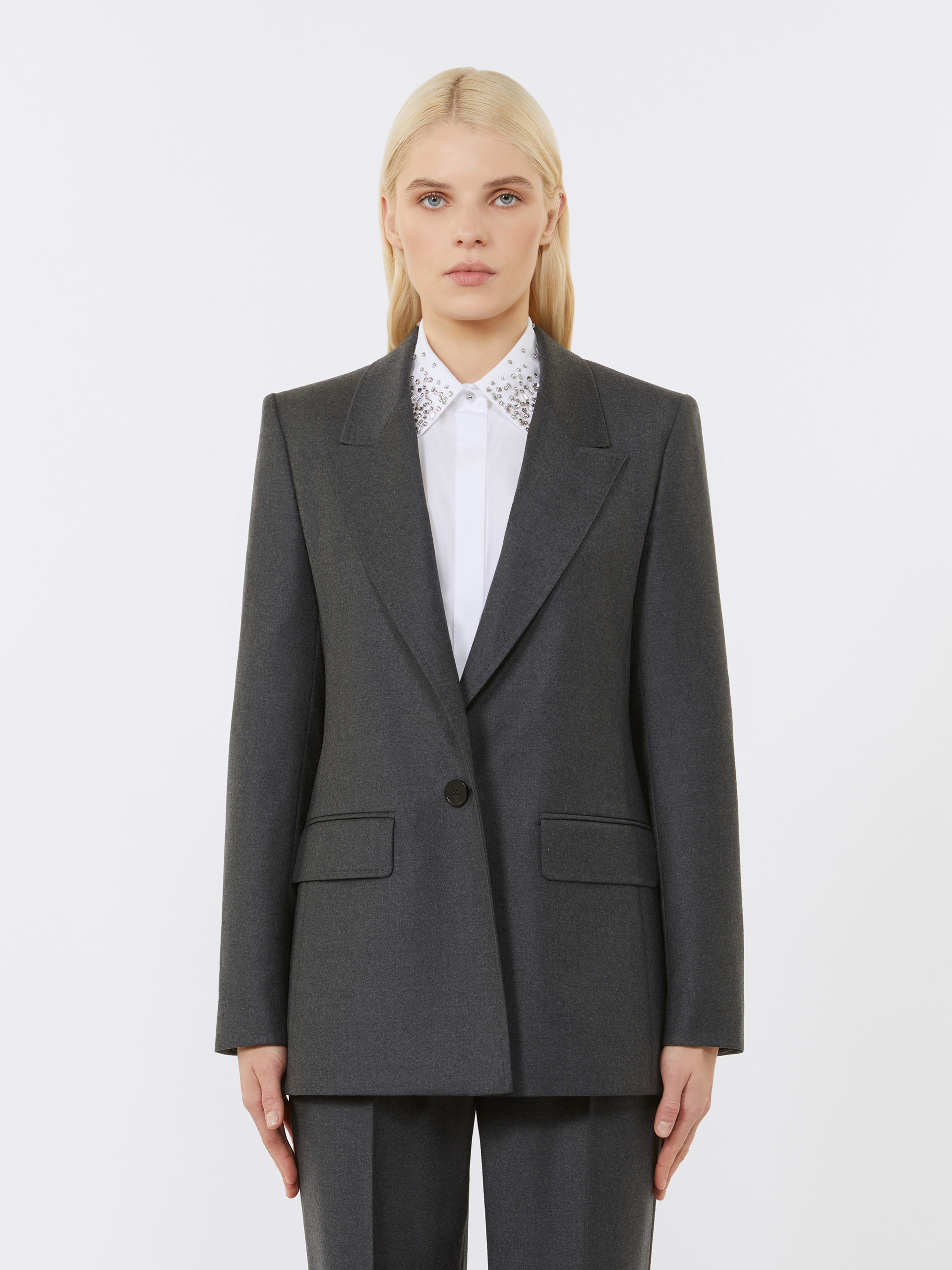 Blazer in flanella di lana stretch foderato