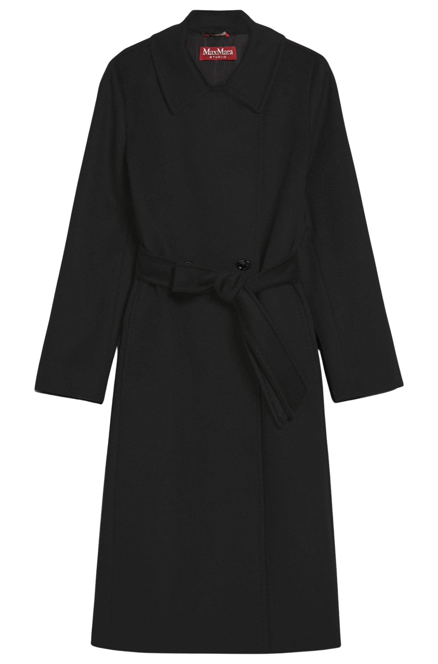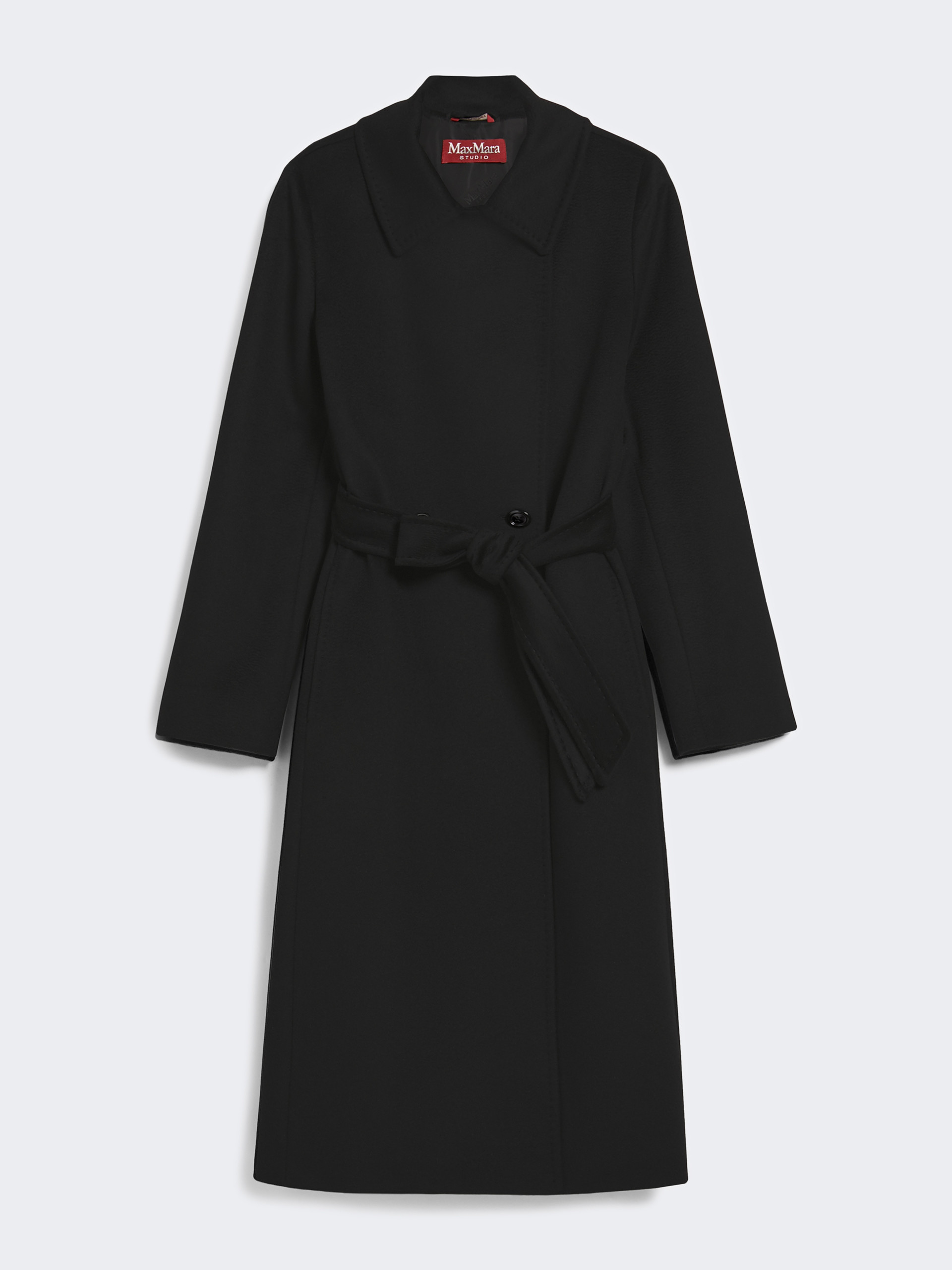 Cappotto lungo dalla silhouette a vestaglia con spacco sul retro.