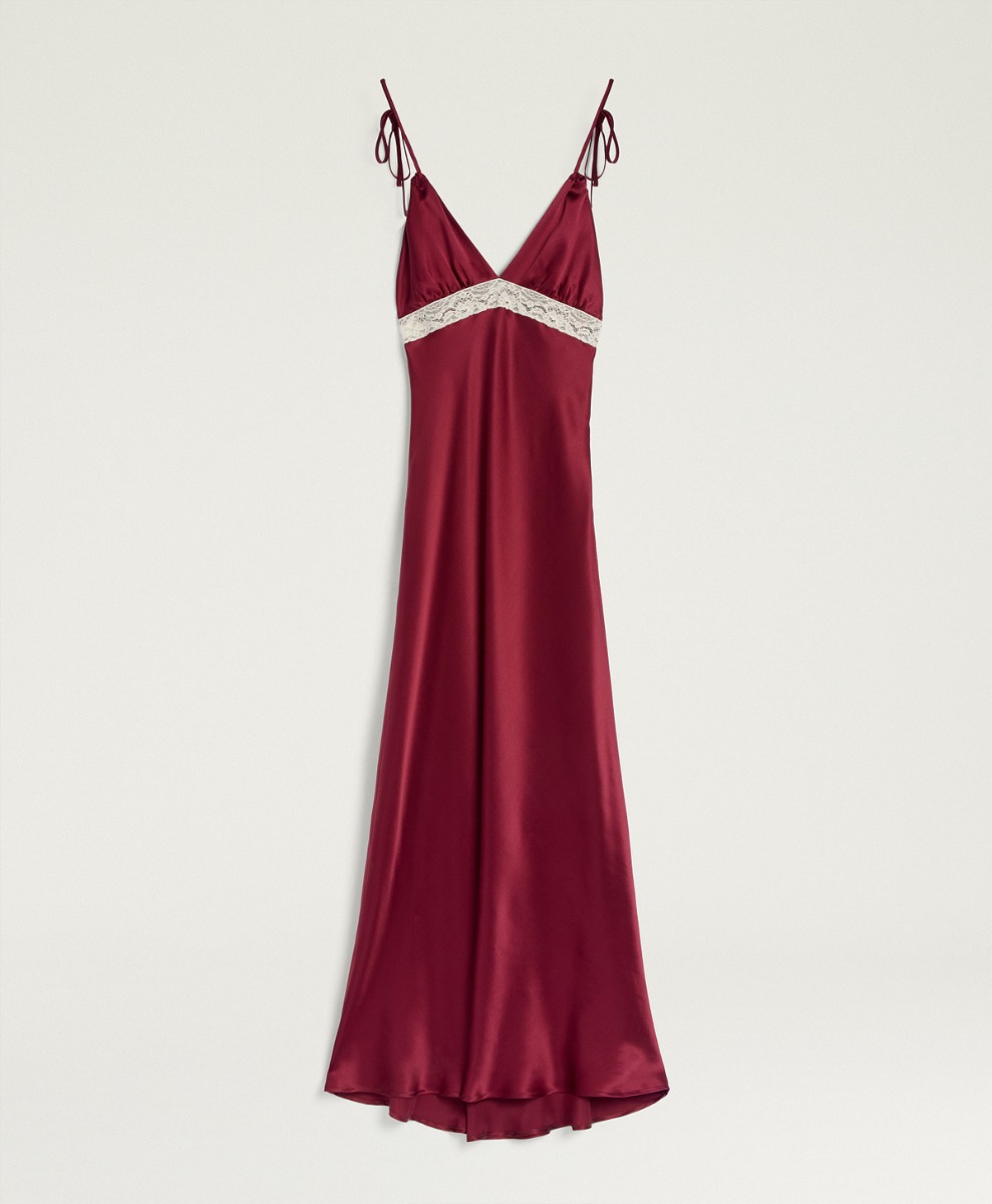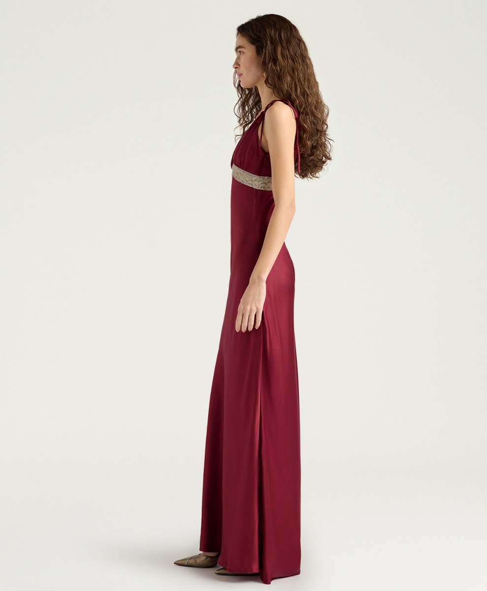 Abito lungo Fedora in raso di seta con pizzo valenciennes Momonì