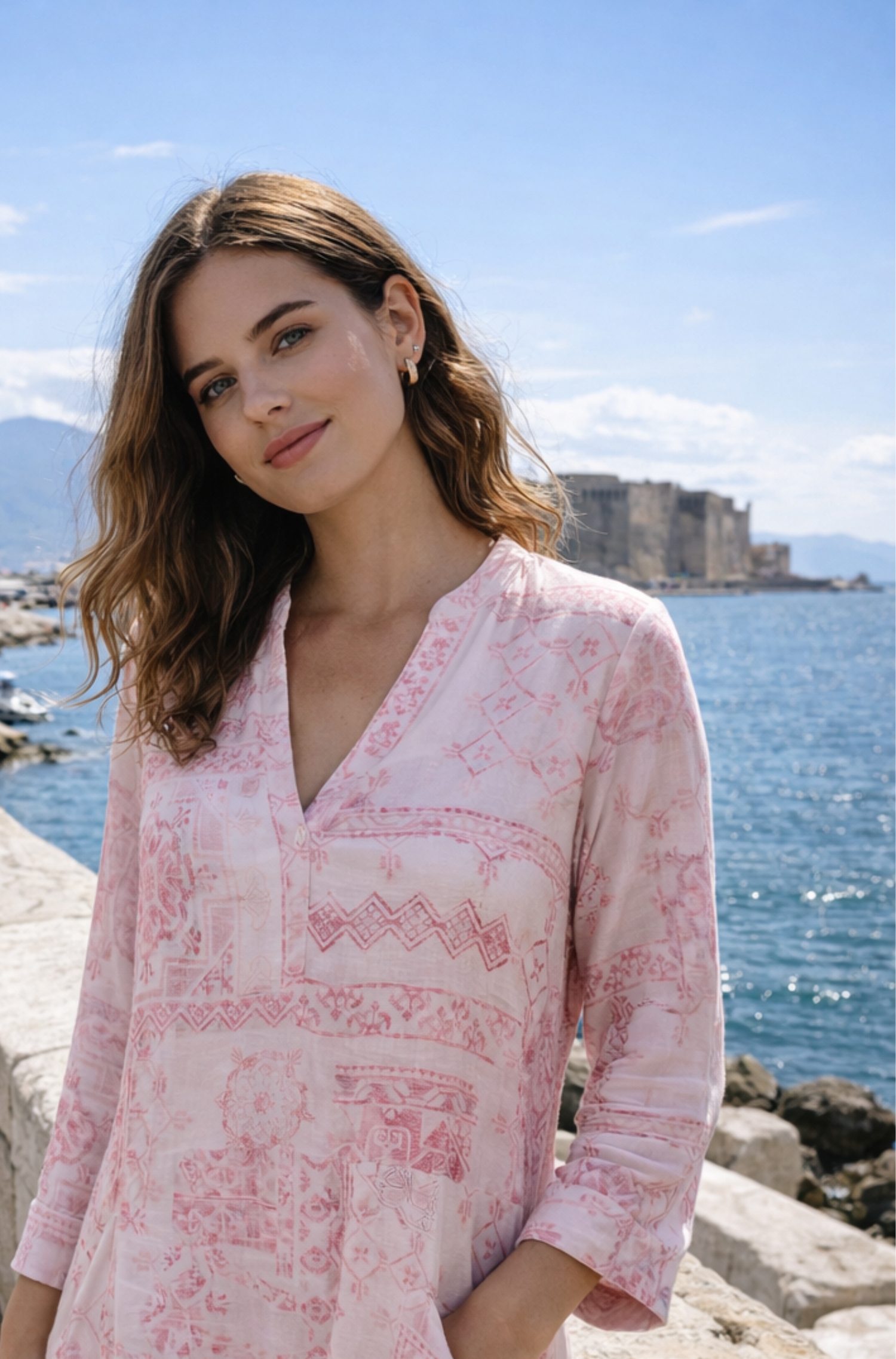 Composizione: capo principale 100% seta, bottoni in madreperla.
