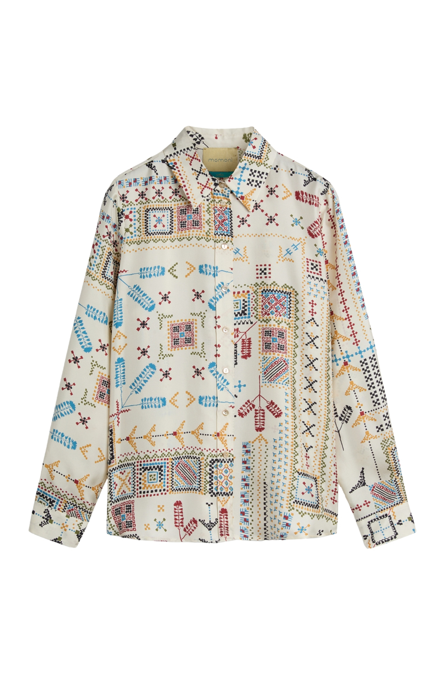 Camicia Momonì Arles in Twill di Seta Stampata - Collo a Vela
