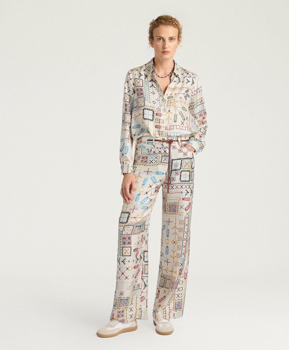 La camicia Momonì Arles è un classico della camiceria femminile reinterpretato nelle iconiche stampe del brand. Realizzata in twill di pura seta 100% stampata in Italia, offre una mano morbida, una lucentezza discreta e una caduta elegante, caratteristiche tipiche di questo tessuto noto per la sua trama diagonale resistente e raffinata. Il twill di seta è apprezzato per la sua durabilità, la capacità di mantenere colori intensi e la maggiore resistenza alle pieghe rispetto ad altri tipi di seta, rendendolo ideale per camicie di qualità.