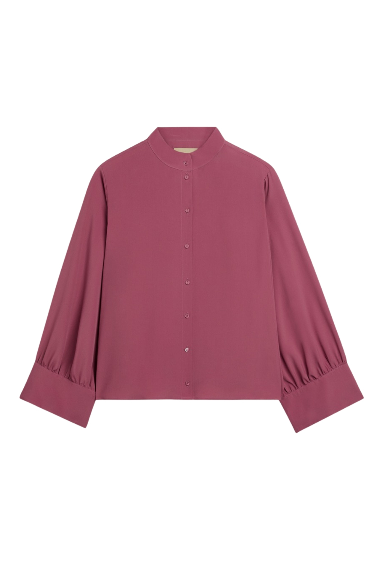 Camicia Momonì Franklin Boxy in Acetato Seta - Maniche Arricciate e Collo Alto
