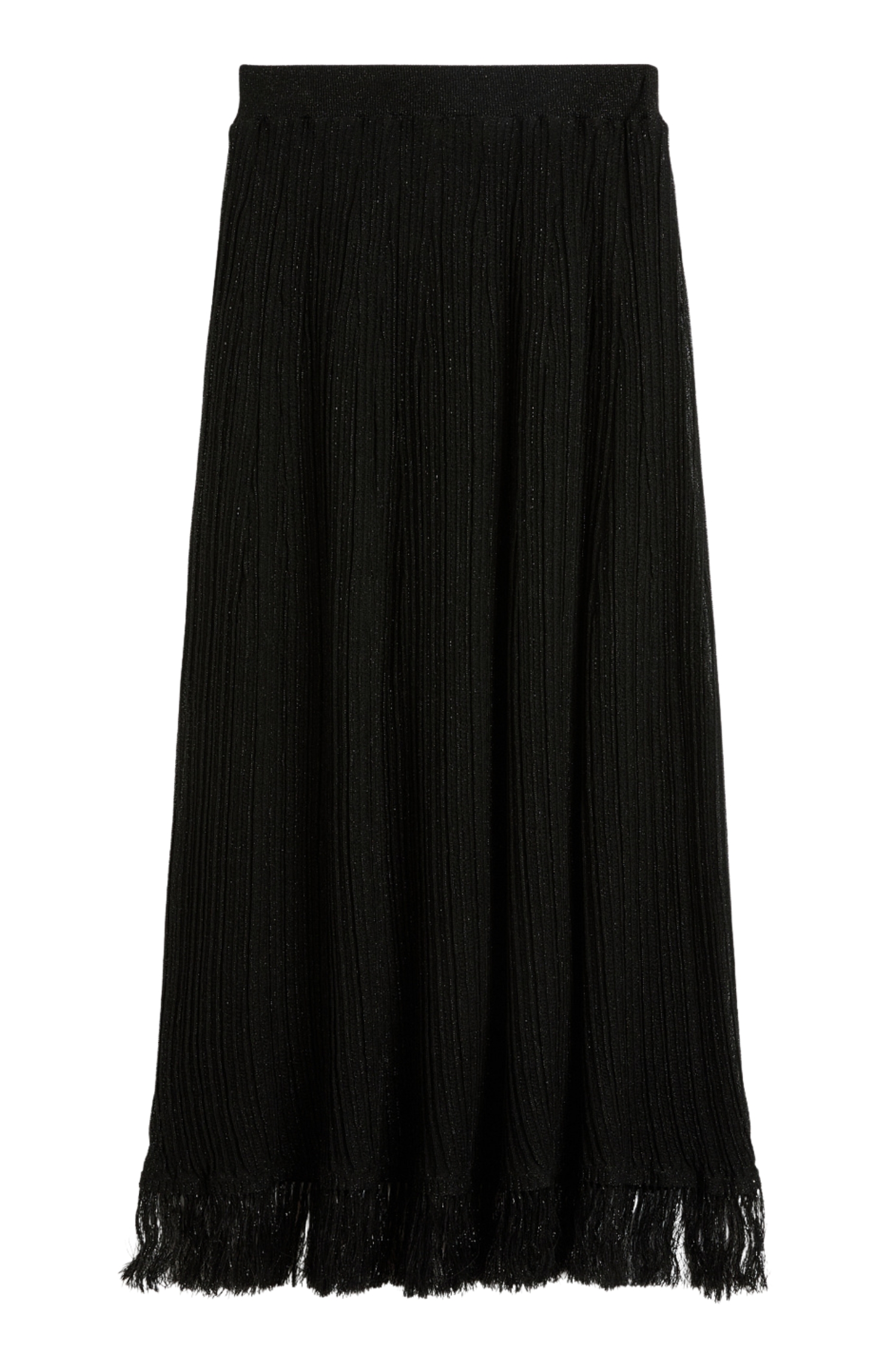Realizzata in 70% viscosa, 15% fibra metallizzata lurex, 15% poliestere, presenta texture costine multi-riga che creano effetto tridimensionale raffinato. Il lurex aggiunge riflessi luminosi discreti nel nero, mentre la viscosa garantisce morbidezza e drappeggio fluido. Leggera nonostante la lunghezza maxi, si muove elegantemente ad ogni passo.