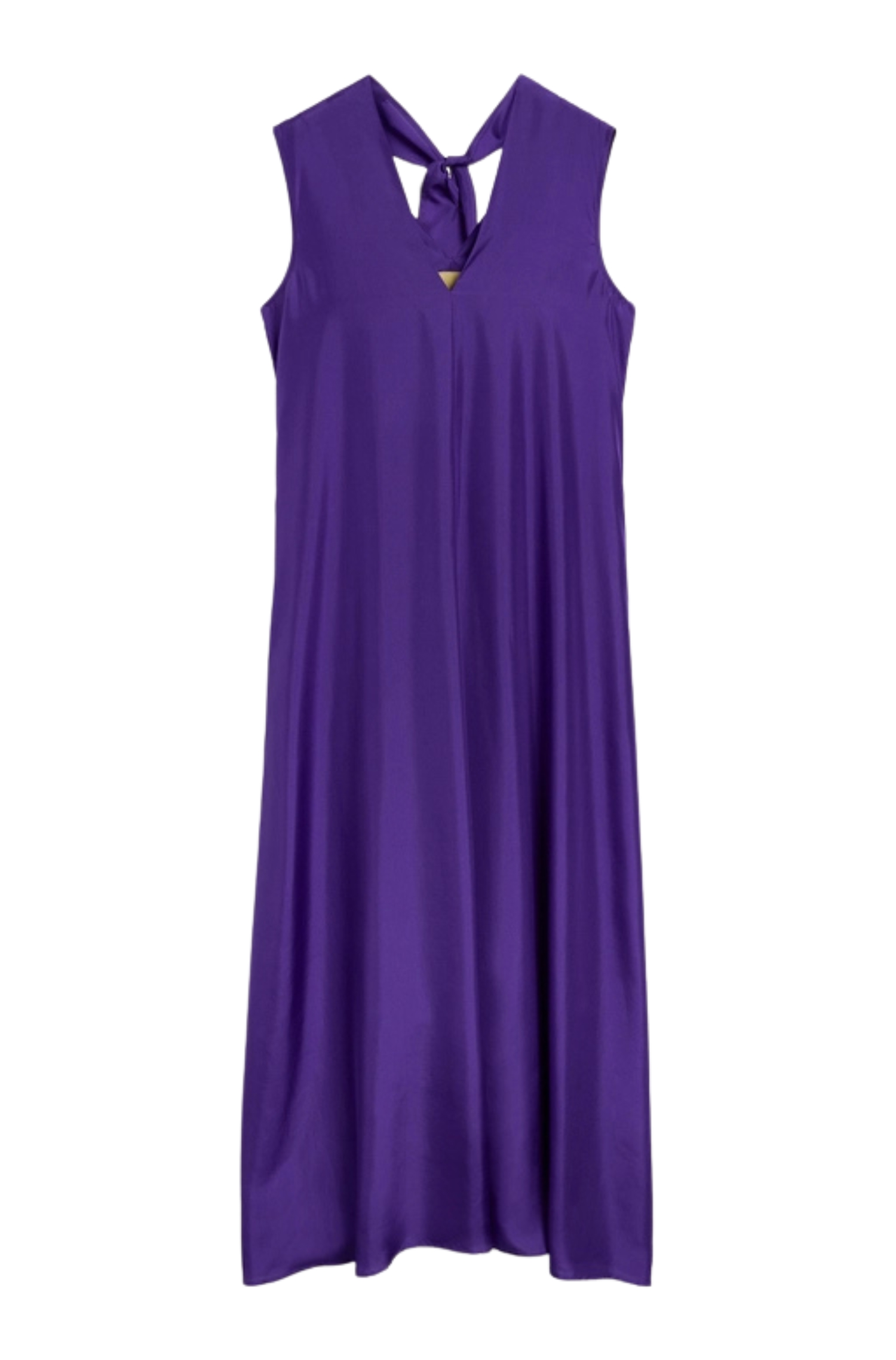 Momonì vestito Cueva lungo in habutai di pura seta unita con scollo a V e fusciacca posteriore