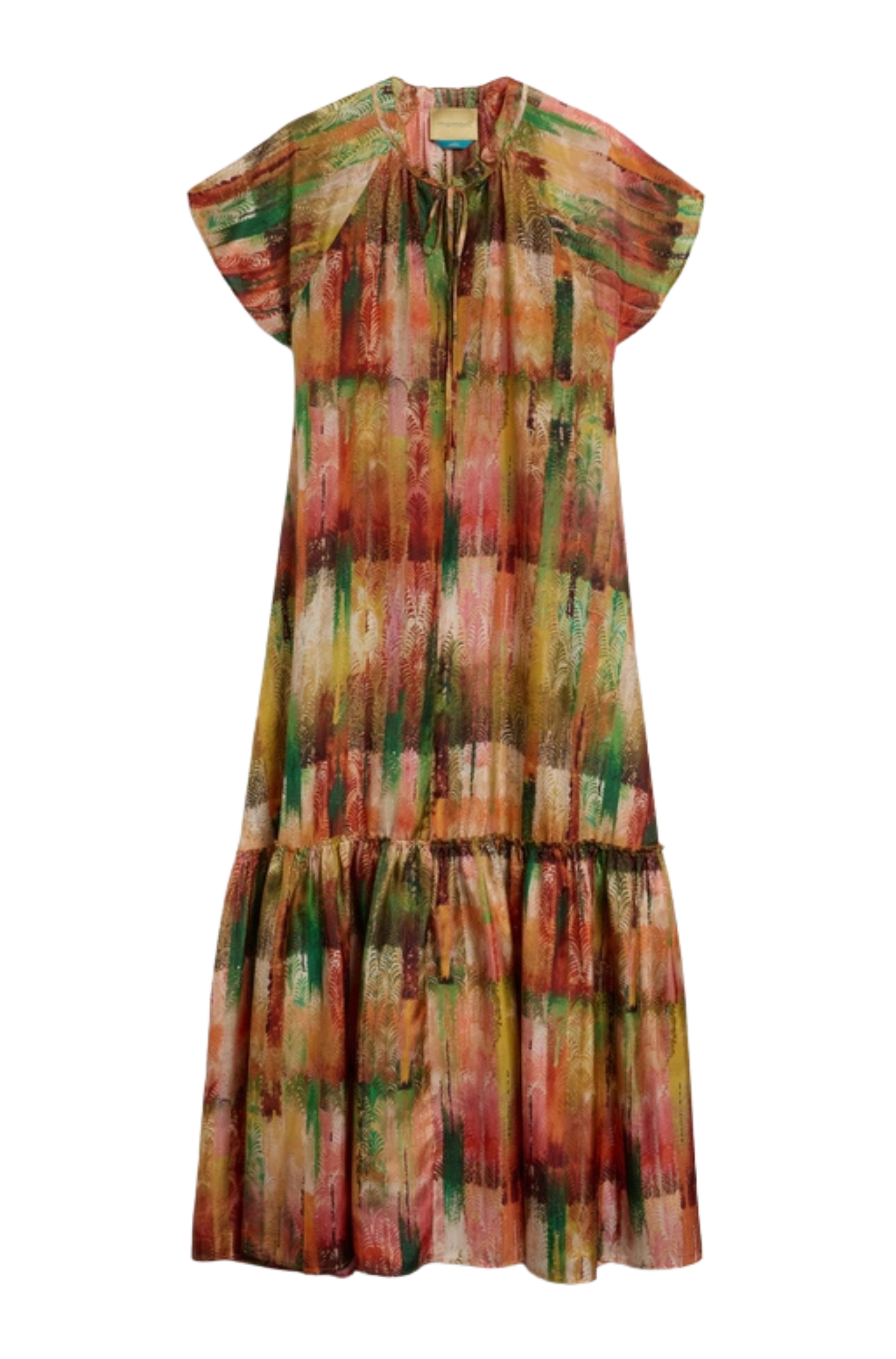 Momonì vestito Paloma lungo in habutai di pura seta stampata multicolor verde