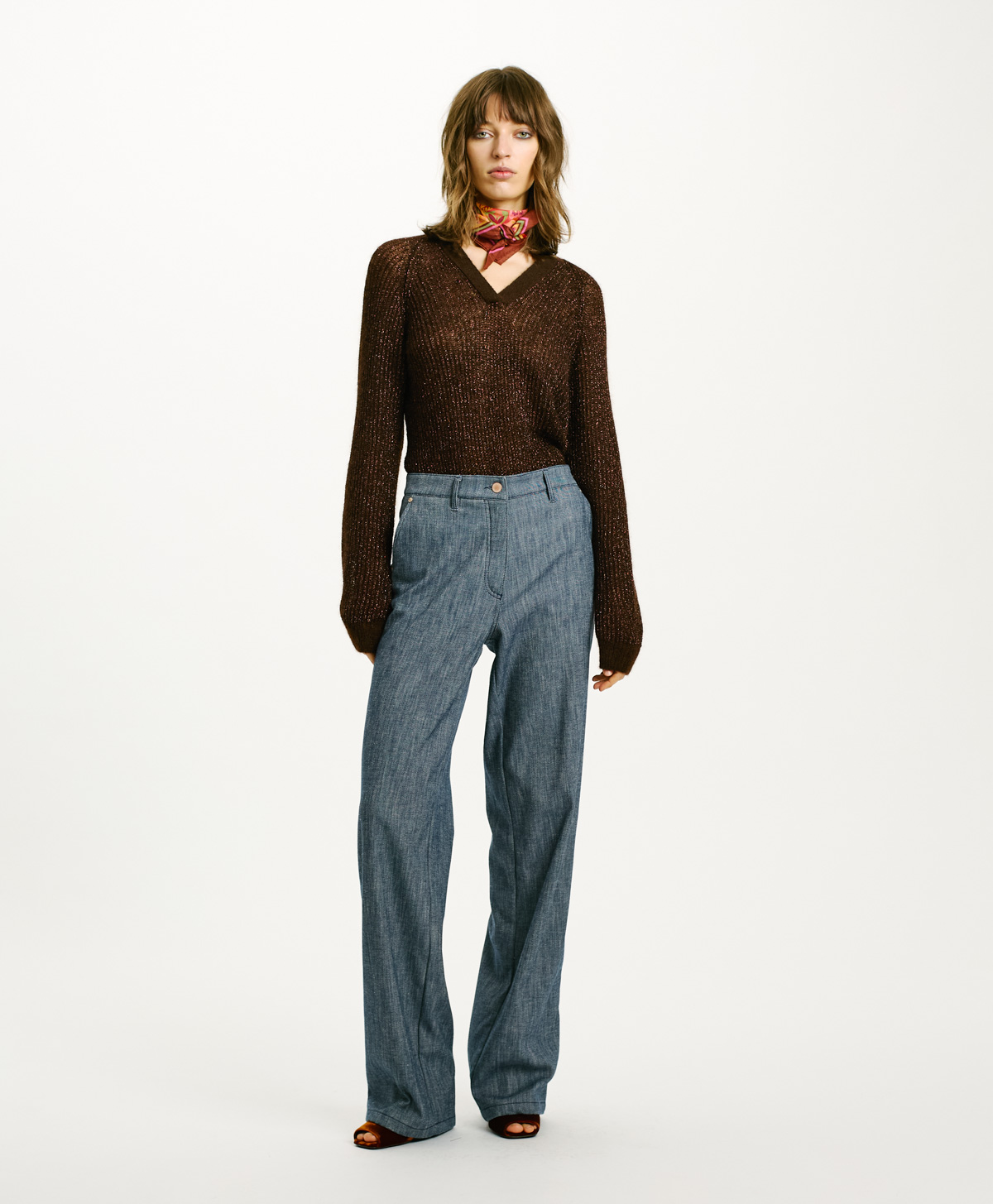 I pantaloni Pocitos di Momonì sono l'ideale per chi cerca l'equilibrio perfetto tra stile sartoriale e l'iconico fascino del denim. Realizzati in cotone elasticizzato, questi pantaloni presentano una gamba dritta e lunga, che si adatta facilmente a qualsiasi silhouette. La linea sartoriale è impreziosita da dettagli in stile jeans, come le tasche alla francese e il bottone a chiodo, che aggiungono un tocco di casualità e freschezza.