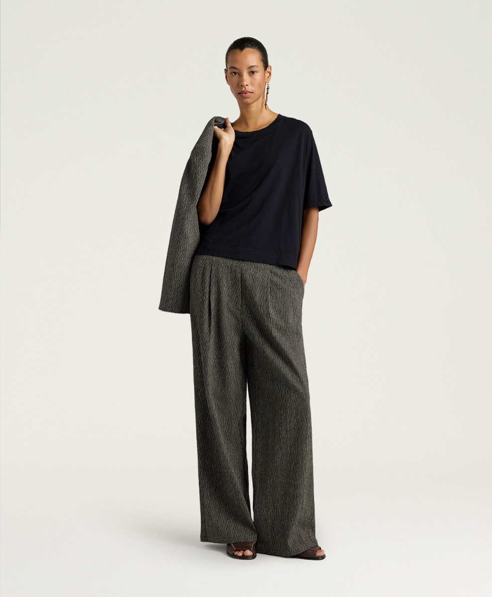 Il jersey misto cotone/viscosa coniuga traspirabilità e morbida caduta, ideale per un utilizzo trasversale dalla mezza stagione allestate. In nero, Noche diventa un vero basic del guardaroba, perfetta con denim, pantaloni a palazzo o gonne stampate.