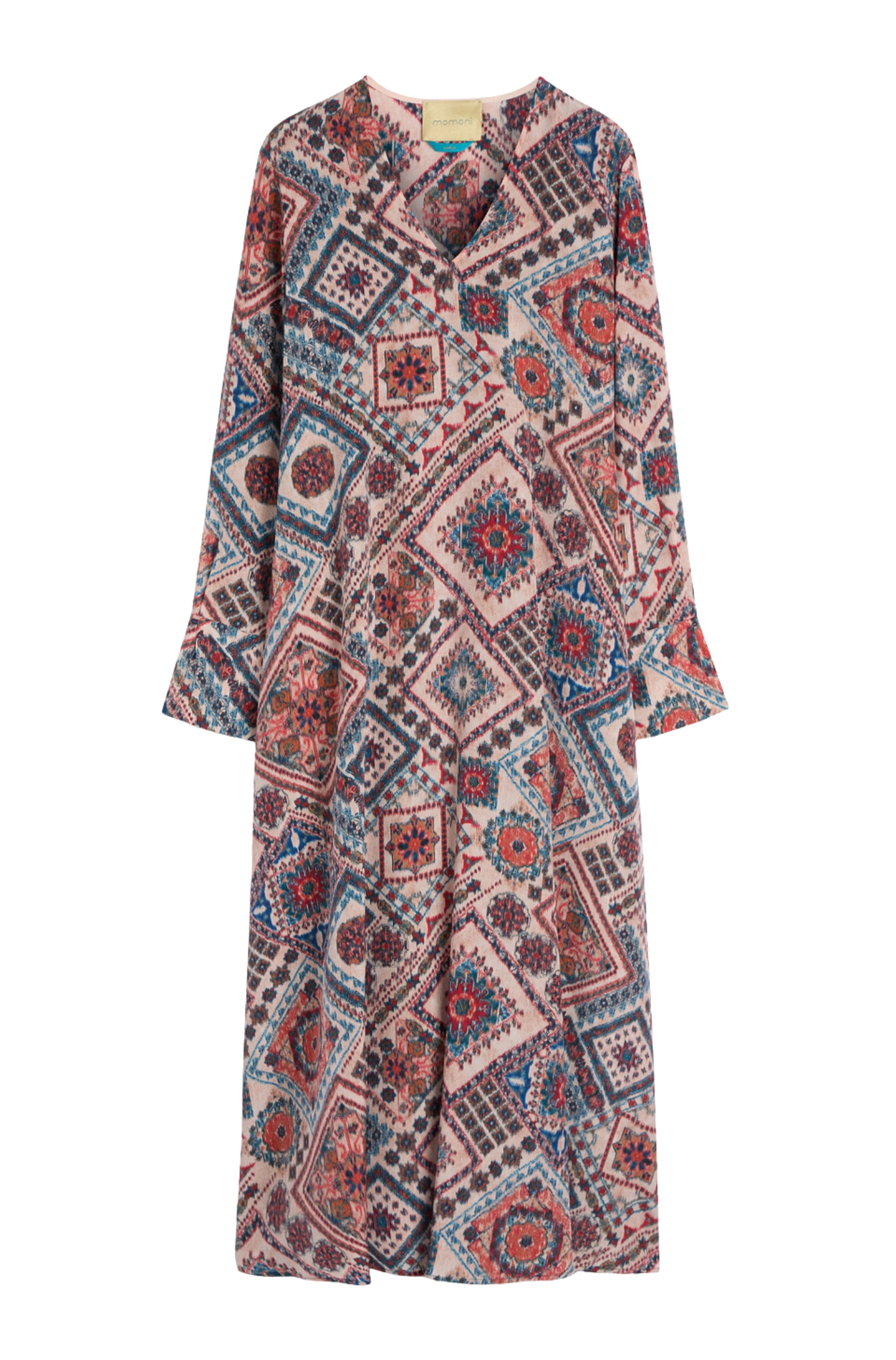 Il vestito Momonì Chaco rappresenta l'eccellenza del Made in Italy attraverso un design che unisce tradizione sartoriale e modernità. Realizzato in crepe de chine di seta 100% stampata in Italia, questo abito donna incarna l'eleganza discreta e sofisticata che contraddistingue l'heritage del brand.